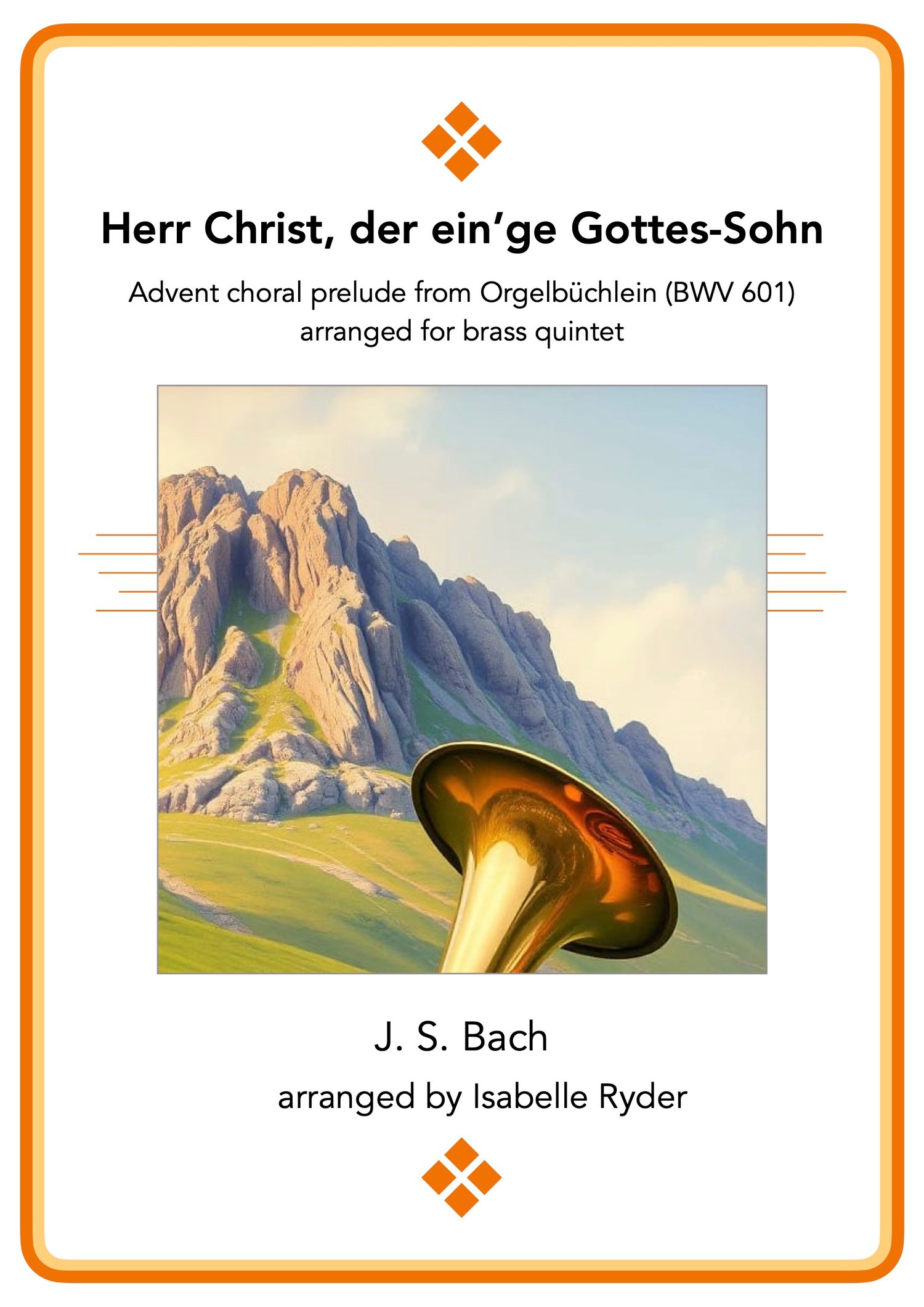 This is an arrangement of an Advent chorale prelude from J. S. Bach's Orgelbüchlein. The chorale has two titles: the one given above, which means "Lord Christ, the only Son of God"; and "Herr Gott, nun sei gepreiset", which means "Lord God, now be praised". So both titles have positive and joyous connotations.