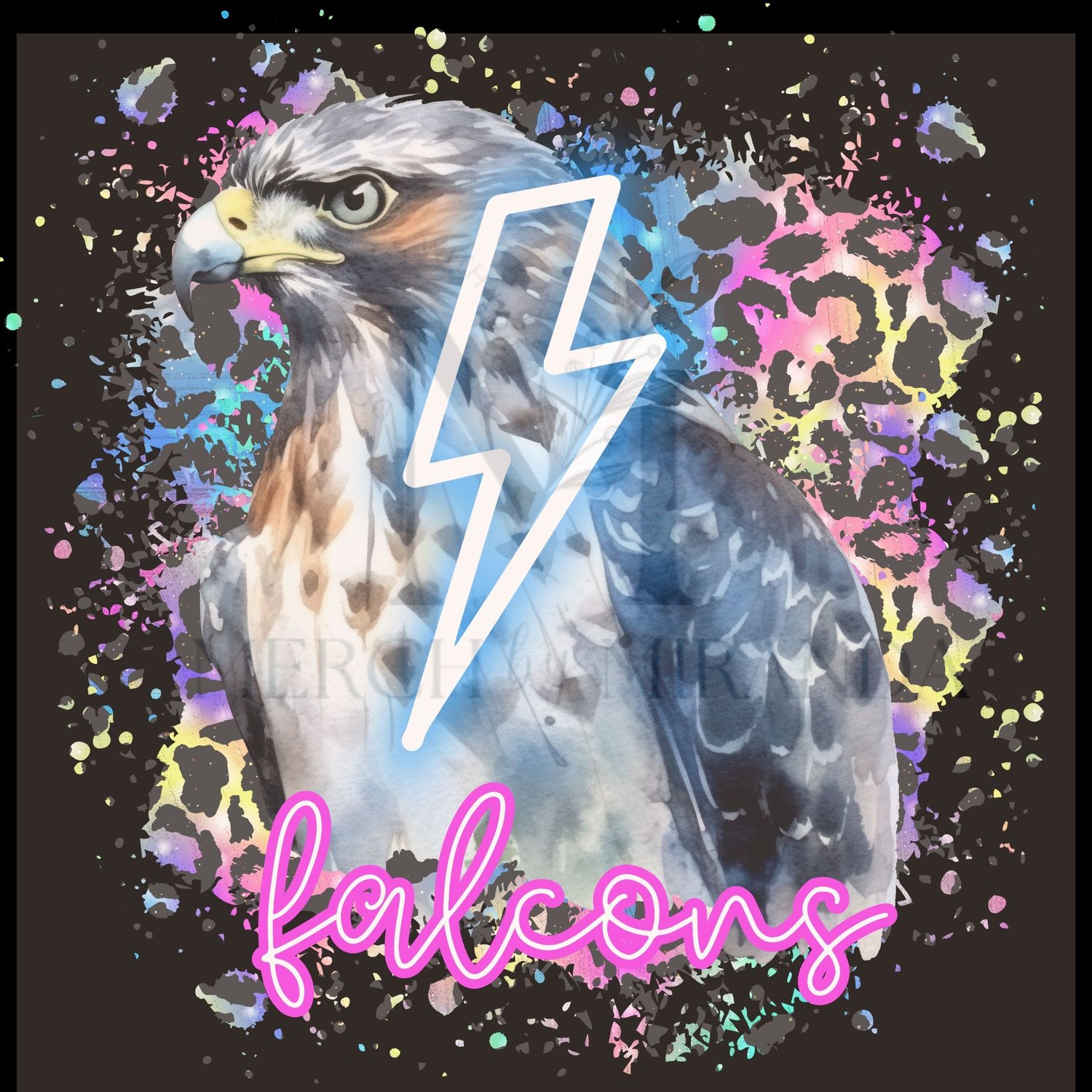 Falcon Mascot - Falcons - Neon Lightning Bolt - School Spirit - Digital Download - Leopard Print