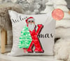 Christmas alphabet, red glitter letters with hand drawn Santa & green Christmas tree embellishments. 26 PNG files for sublimation or print