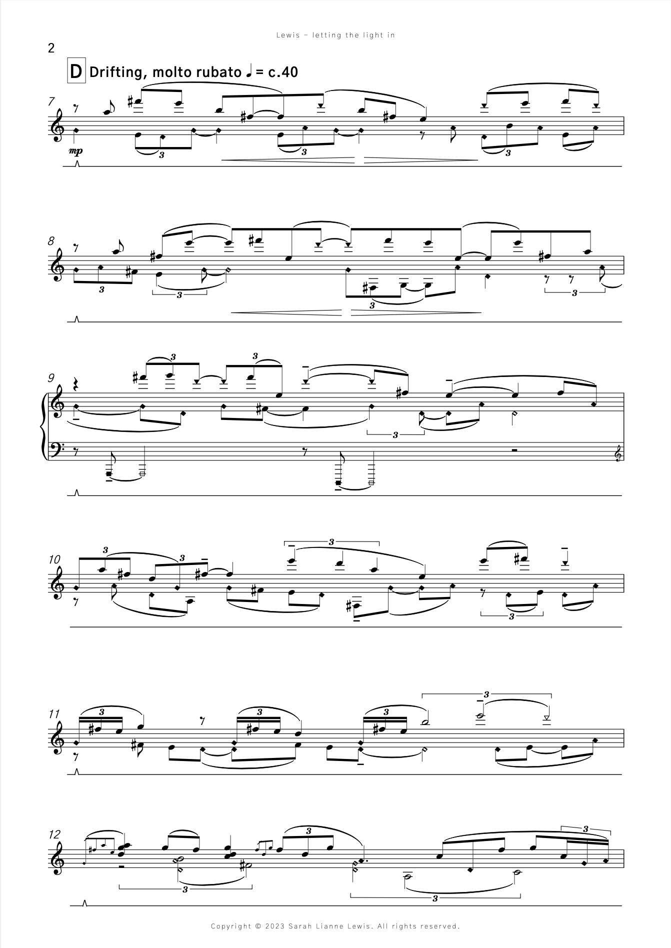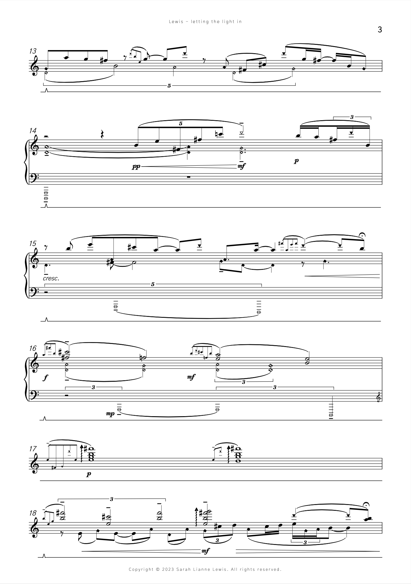‘letting the light in’ was commissioned by Drake Music Scotland, in partnership with Ty Cerdd and NMC Recordings, with funding from PRS Beyond Borders. The work won the Royal Philharmonic Society's Award for Chamber-Scale Composition in 2025.