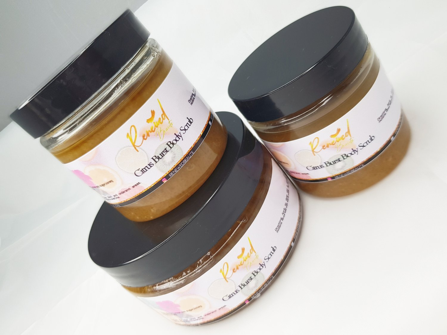 Citrus scented, exfoliating, body scrub! This scrub is packed with Vitamin C, which helps brightens your skin tone and it's overall texture. Greatly recommended for before and after hair removal (shaving, waxing, sugaring). Best used after cleansing the skin, so as to prevent washing off all of the beneficial oils.