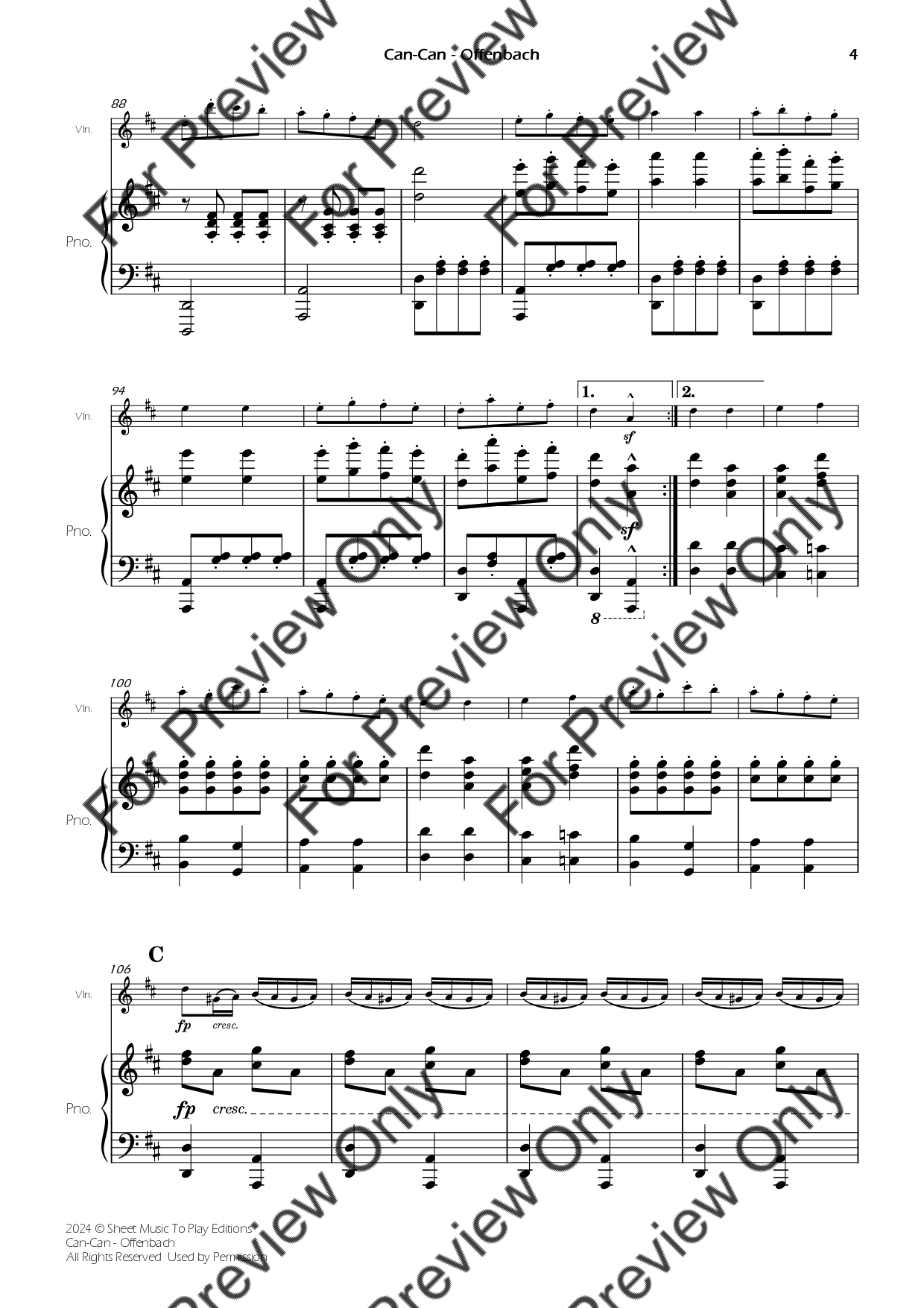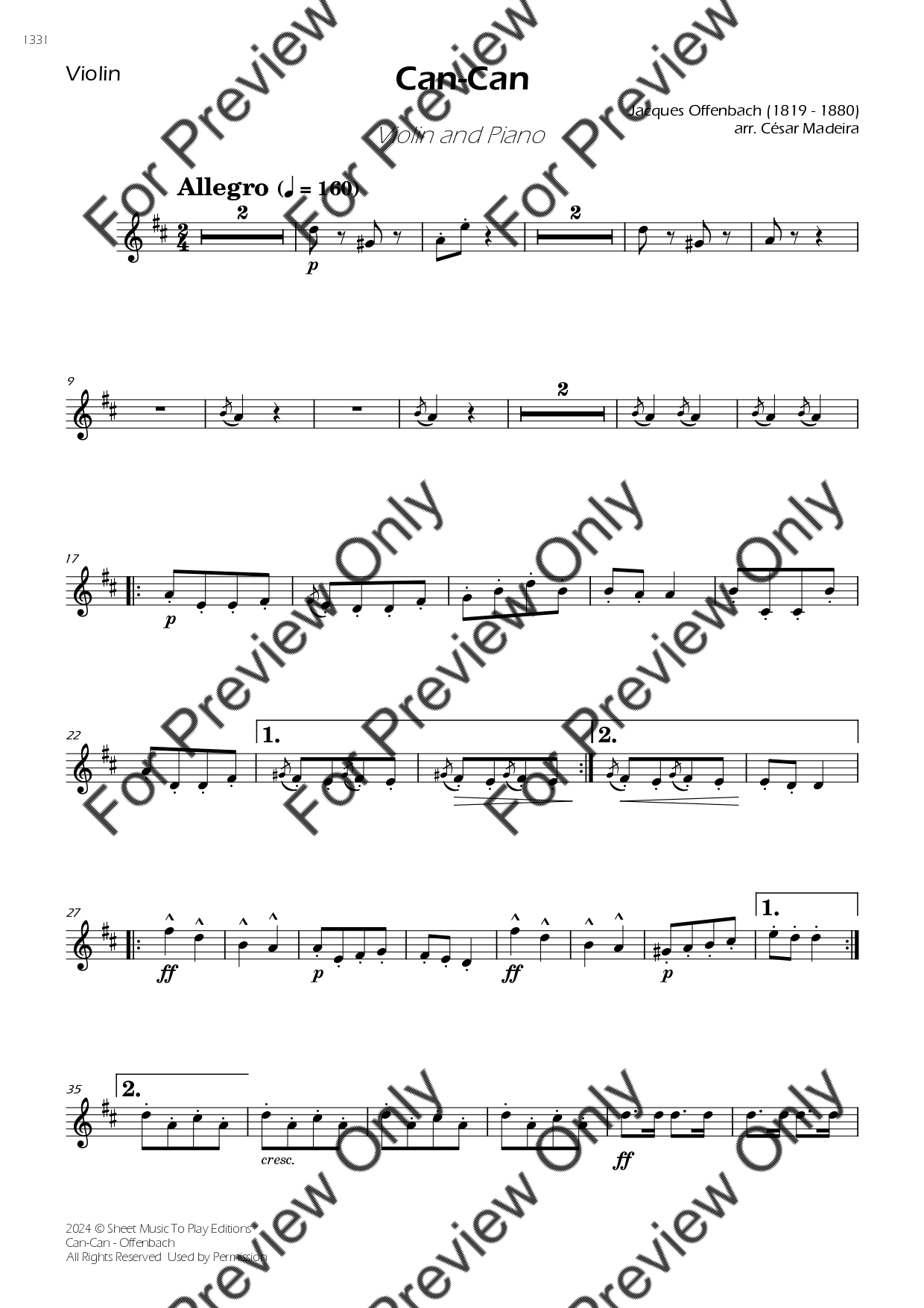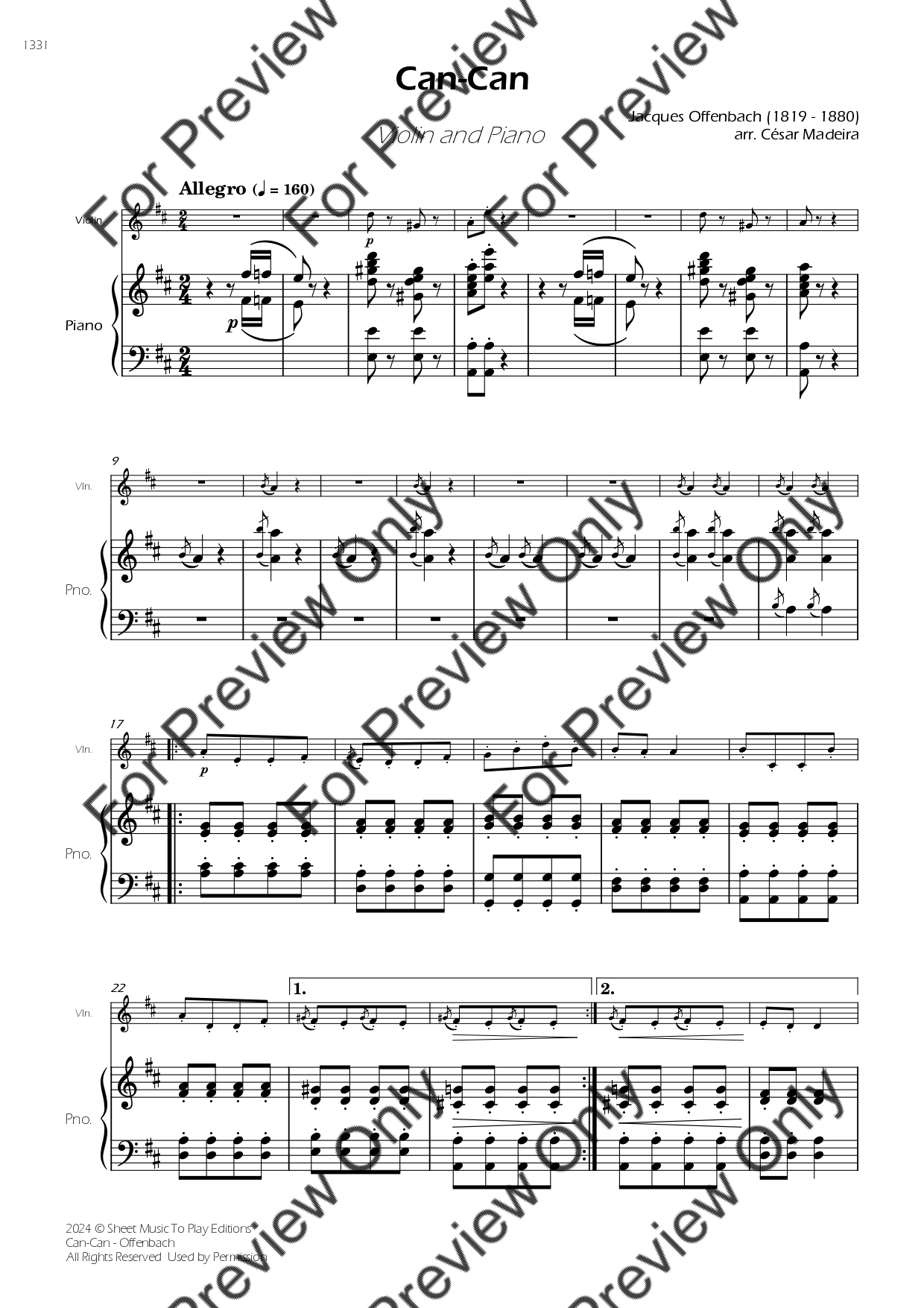 Can-Can by Jacques Offenbach. Arrangement for Violin and Piano. With Full Score and Individual Parts. Have fun!