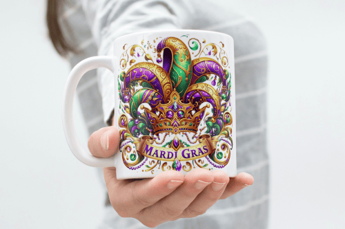 🎭 Designing festive mugs for Mardi Gras and Carnival celebrations.