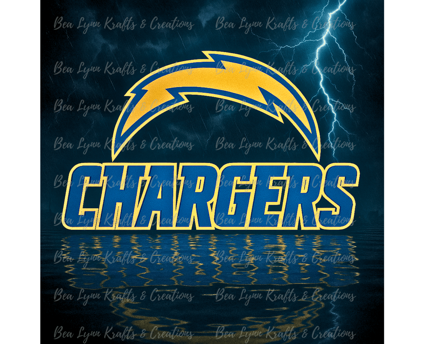 - 💥 Sharp, bold “CHARGERS” text with realistic water reflection
