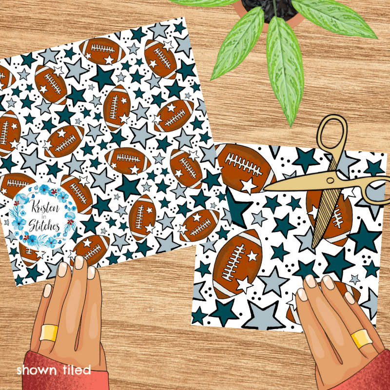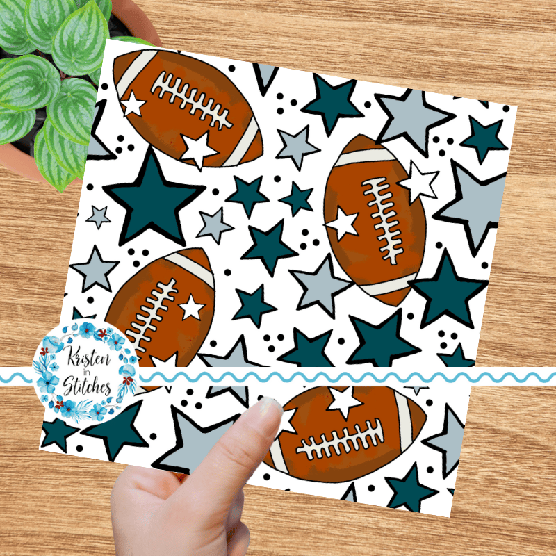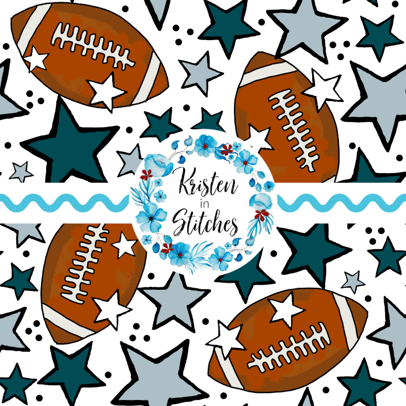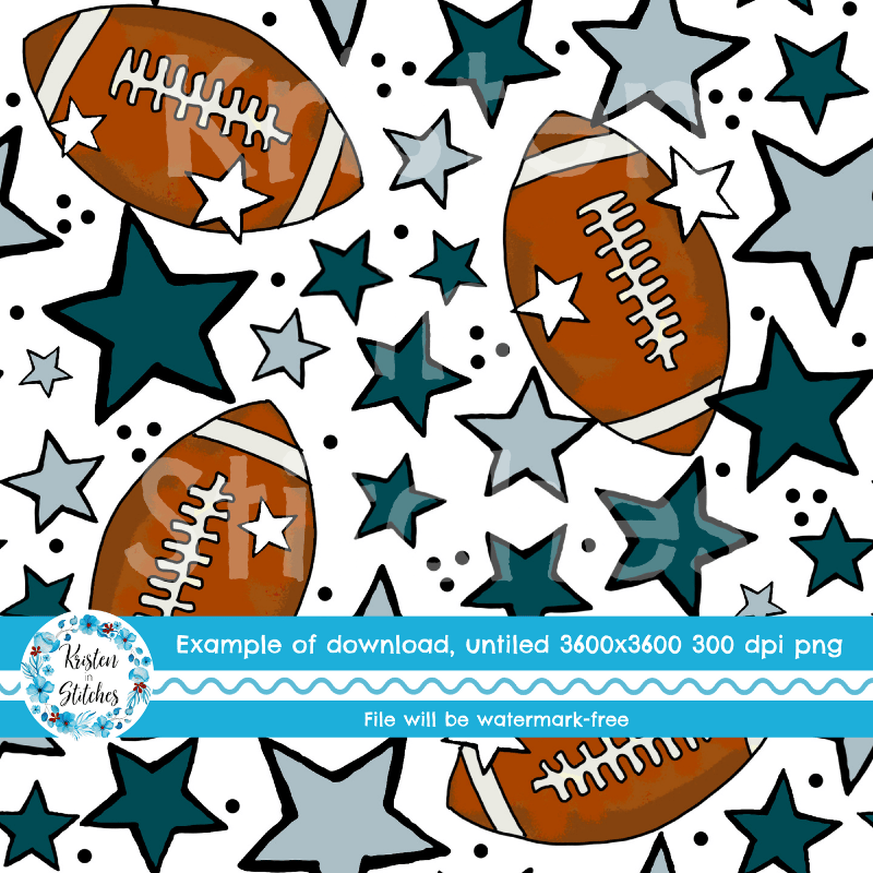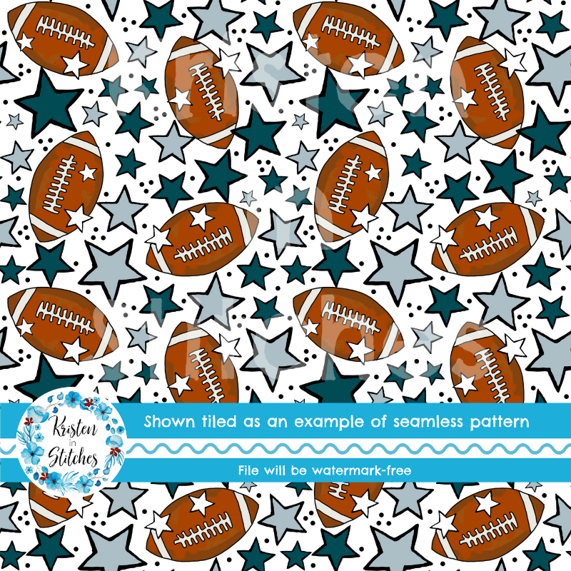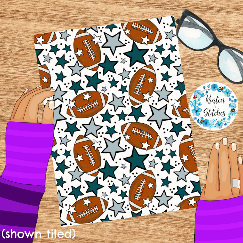 Footballs and stars in Philadelphia Eagles Colors Midnight Green and silver grey.