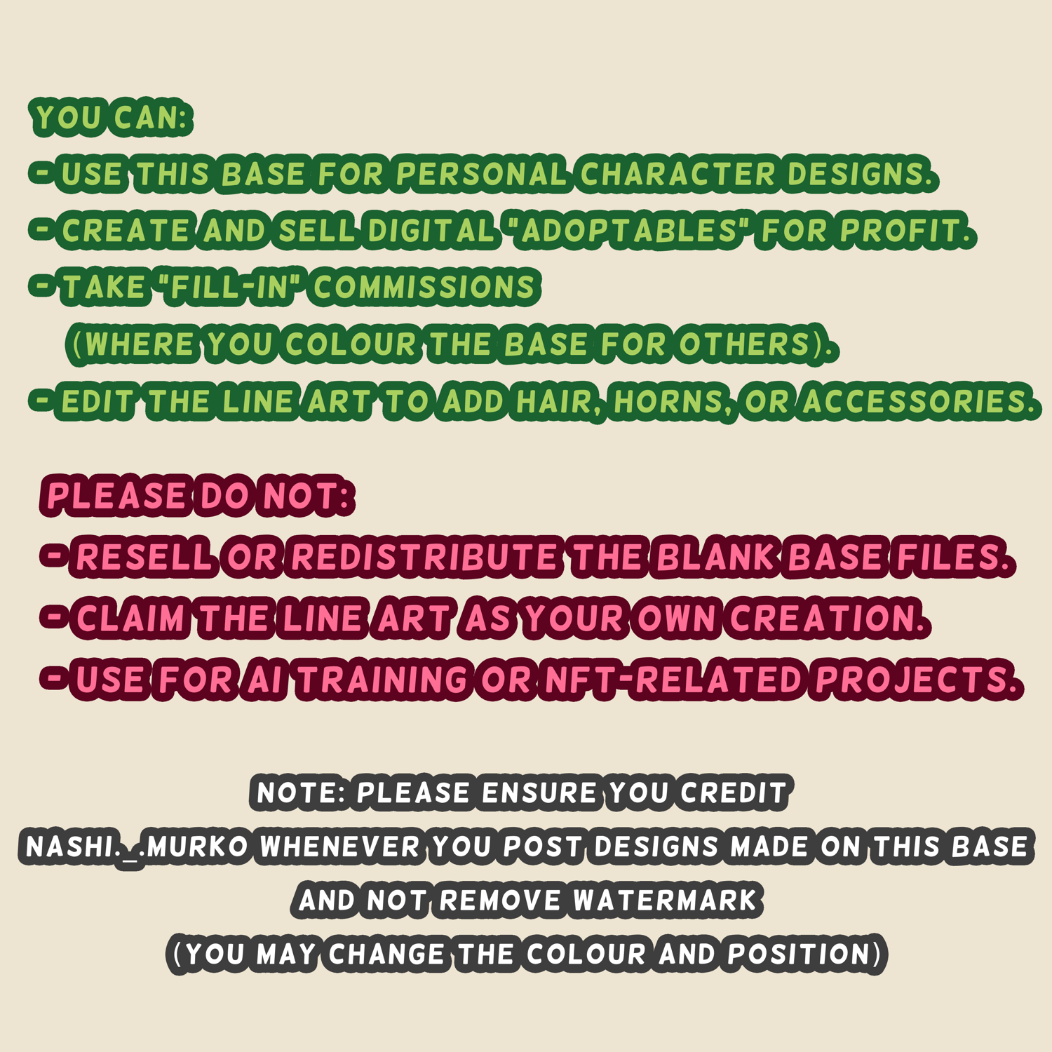 - Remove the ' Base by Nashi._.Murko ' Watermark