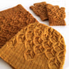 Bees are exceptionally clever creatures. Honeybees use their beeswax to create strong and highly efficient honeycomb structures, which they use for accommodation, food storage, and a place to raise their larvae. The Beeswax Hat and the matching Cowl and Mitts celebrate the beauty of this structure. You can find the set of all three patterns here.