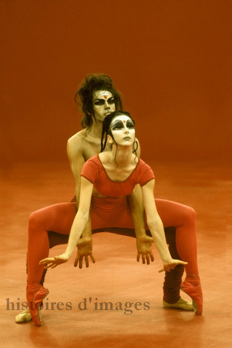 A vibrant moment from Maurice Béjart’s Bhakti, captured in a rare color photograph featuring dancers Germinal Casado.