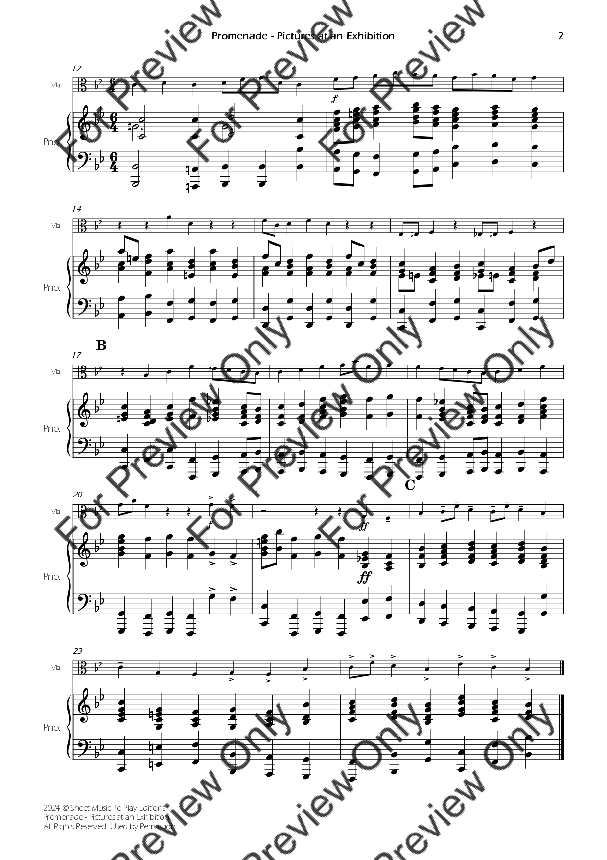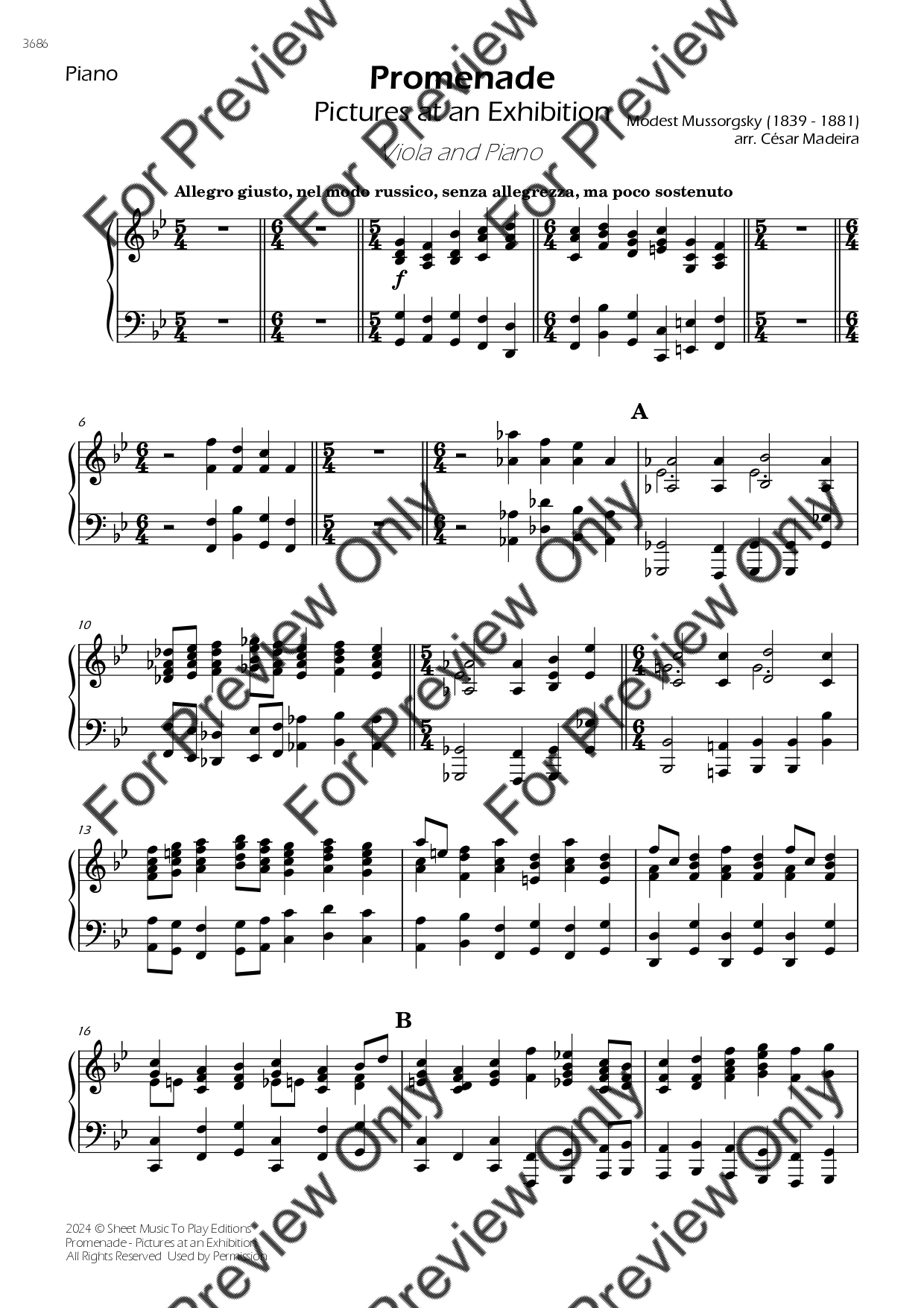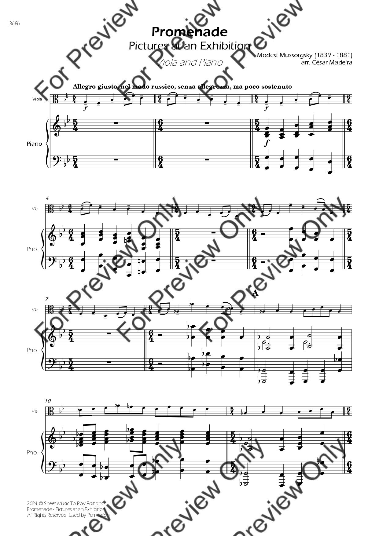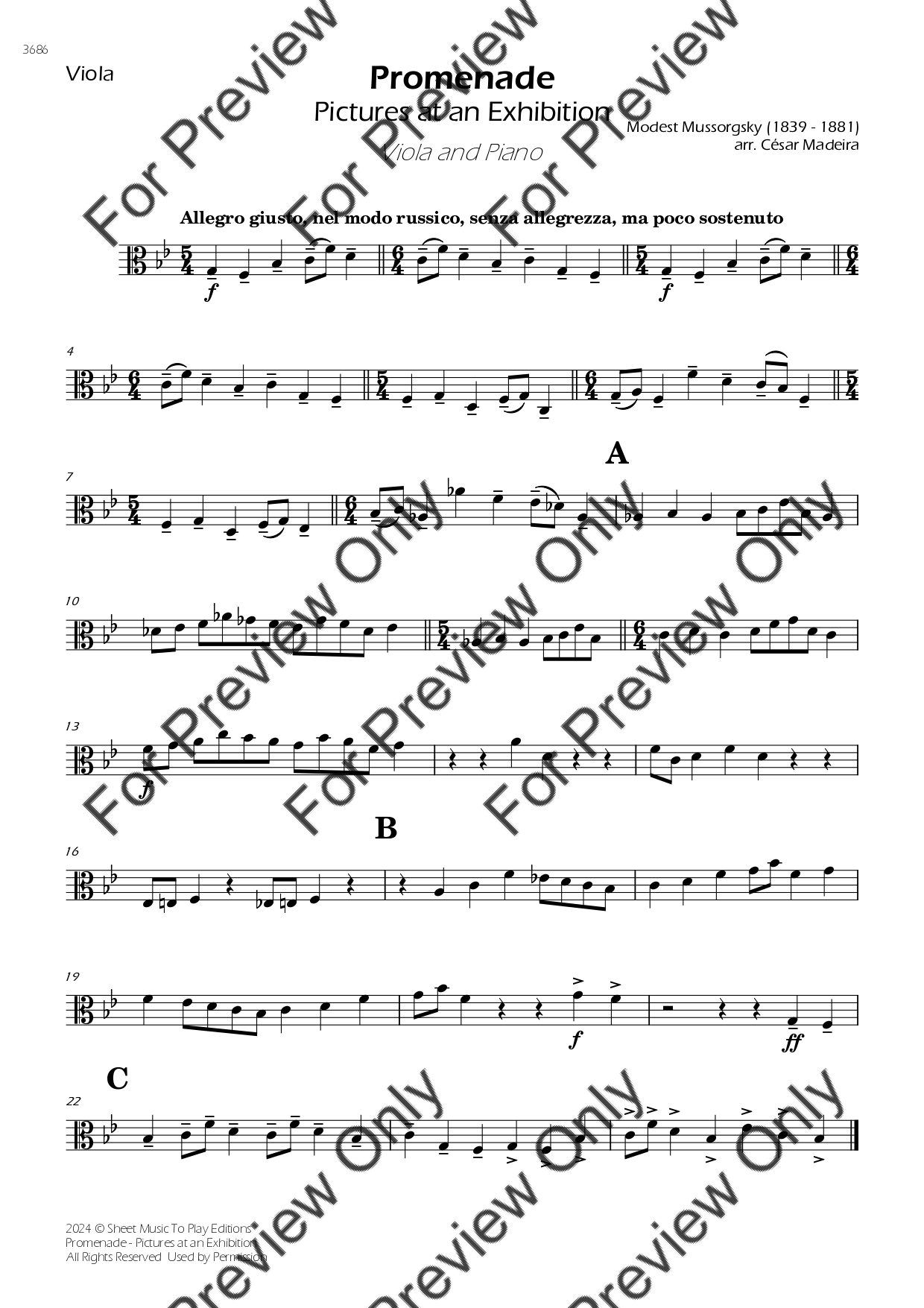 Promenade from Pictures at Exhibition by Mussorgsky and Ravel. Arrangement for Viola and Piano. With Full Score and Individual Parts. Have fun!