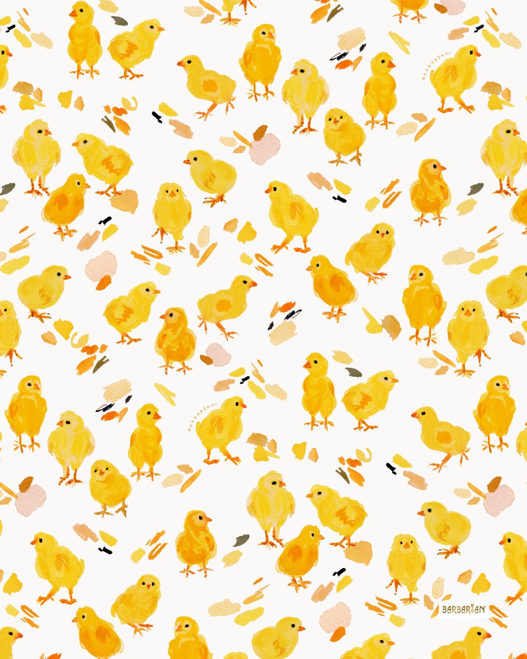 While I was working on this print I was getting all tight and making waaaay too many versions — and I realized that I needed to DECIDE to let these lil imperfect chicks lead.