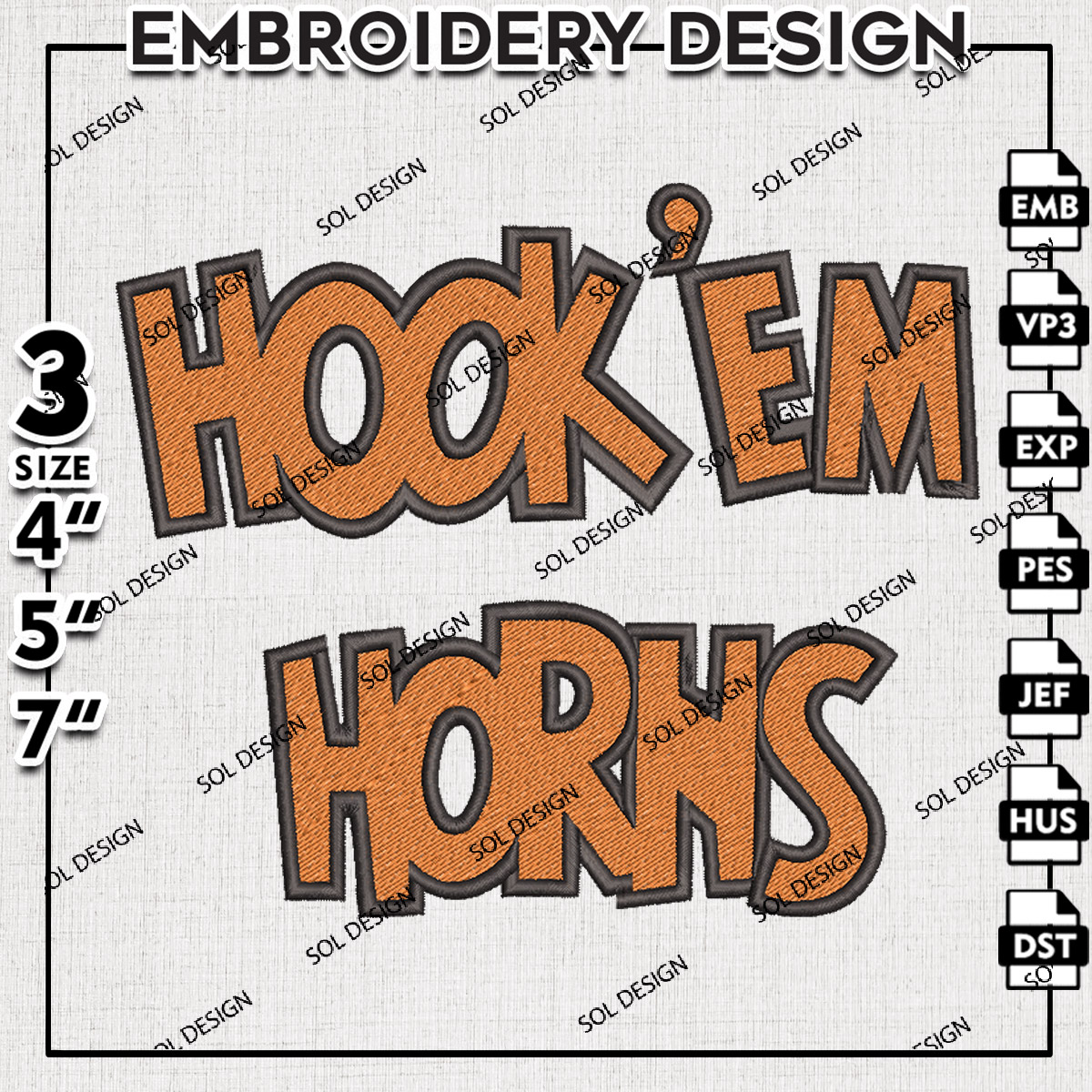 Hook Em Horn NCAA Football Team Logo Embroidery Designs, NCAA Texas Longhorns Machine Embroidery Files, NCAA Logo embroidery designs, NCAA Texas Logo, Digital Download