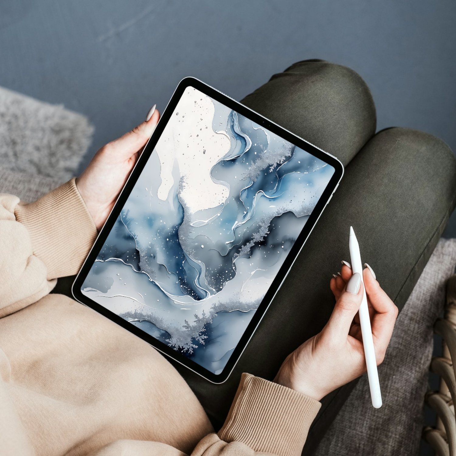 Winter Frost Abstract Watercolor Digital Backgrounds – Set of 12