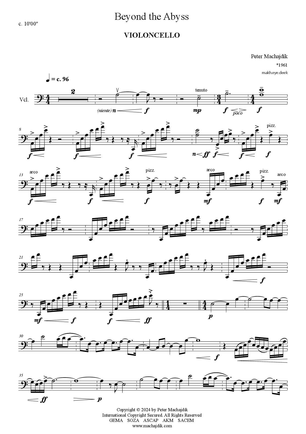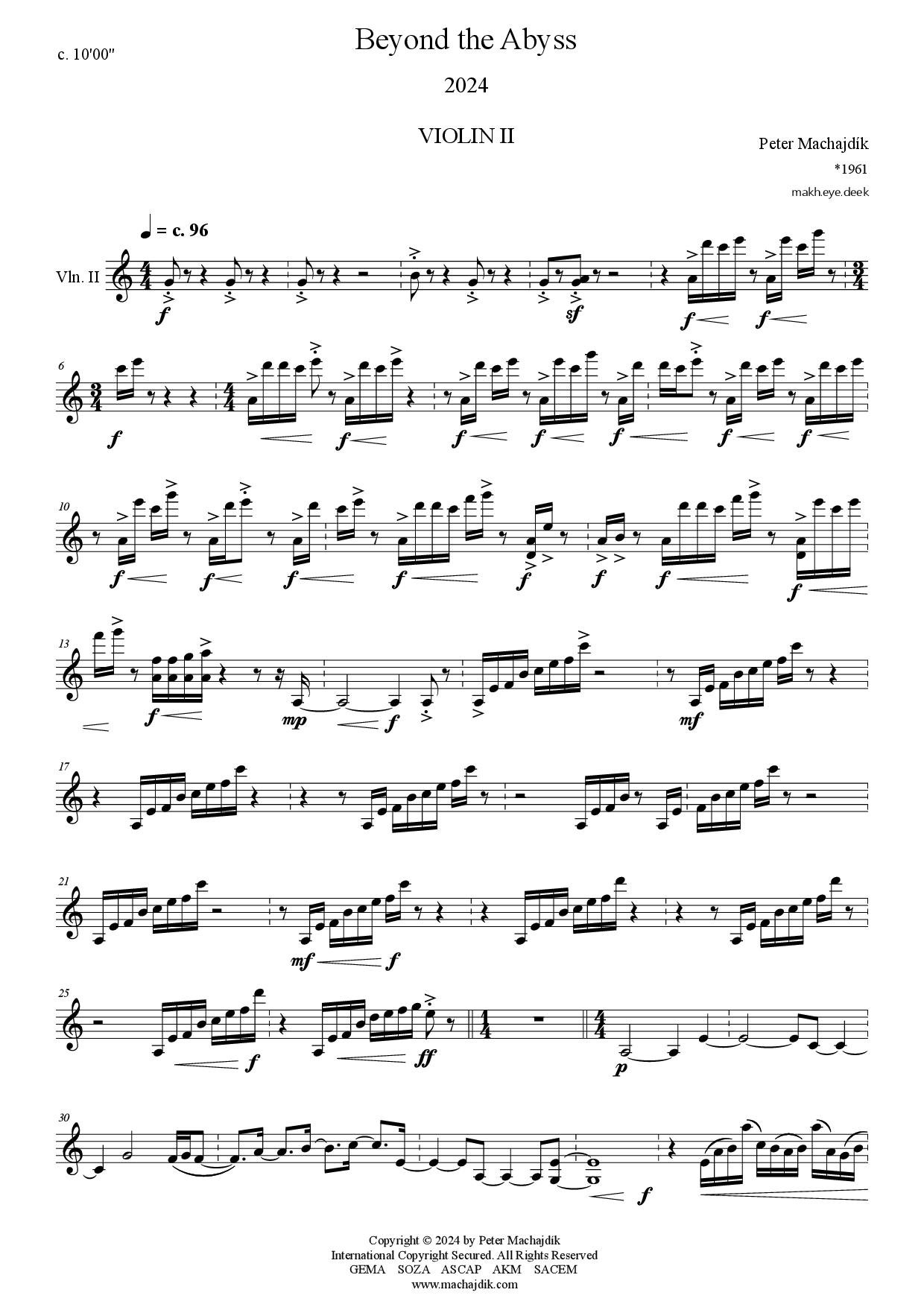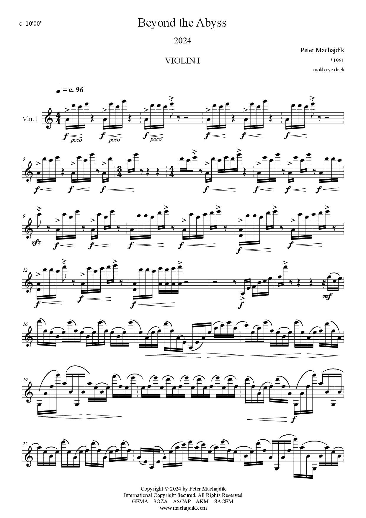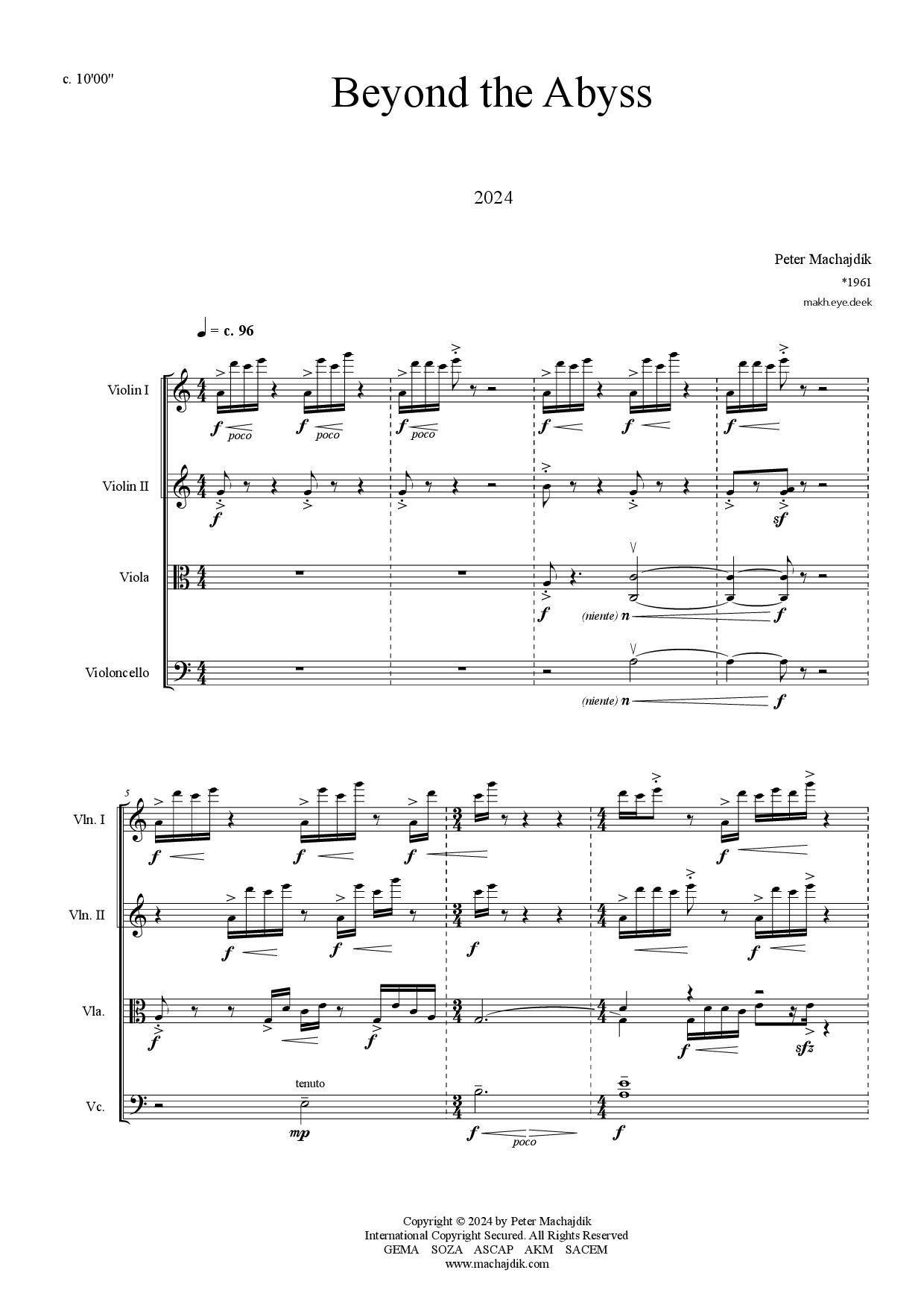 Peter Machajdík: BEYOND THE ABYSS for string quartet (Digital Sheet Music) [score and parts]