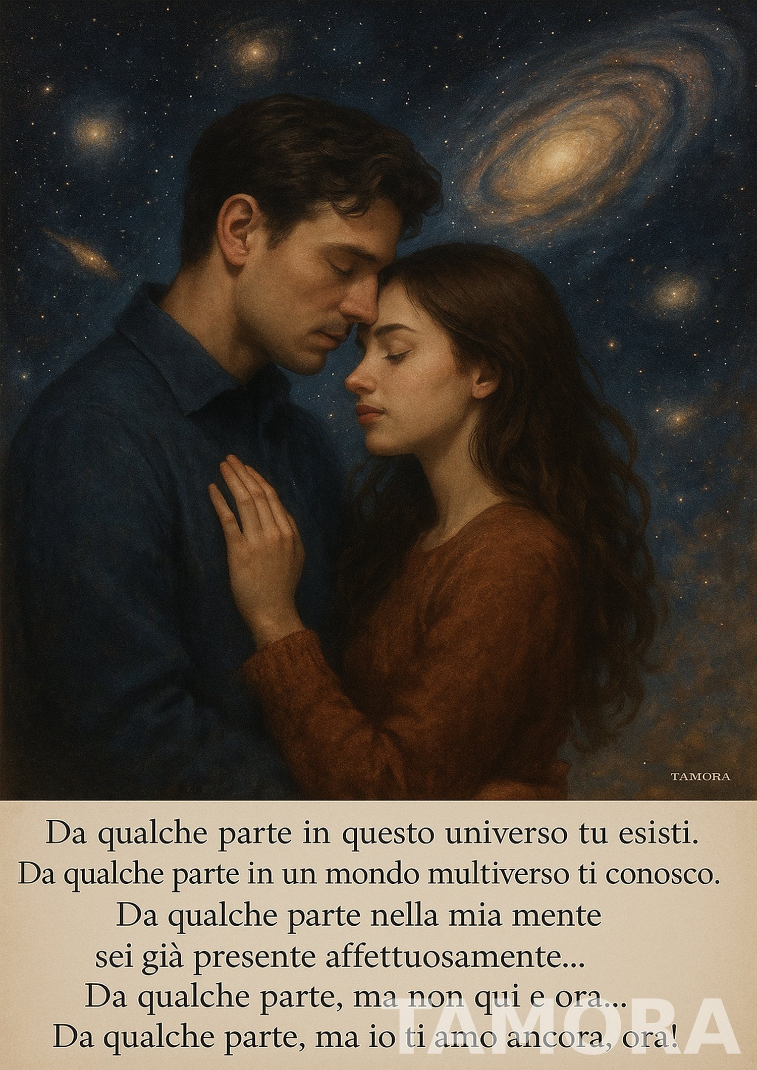 Questa stampa digitale cattura l'essenza di un amore profondo, eterno e forse a distanza. Le parole "Da qualche parte in questo universo tu esisti... ma io ti amo ancora!" risuonano con chiunque senta una connessione speciale, un legame con un'anima gemella che va oltre il qui e ora.