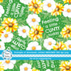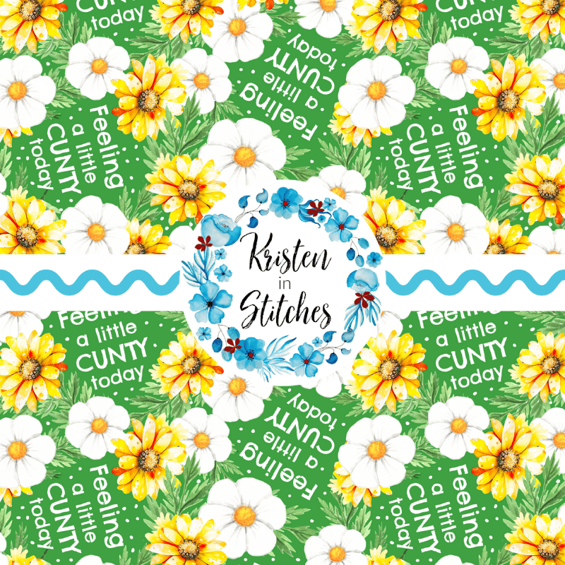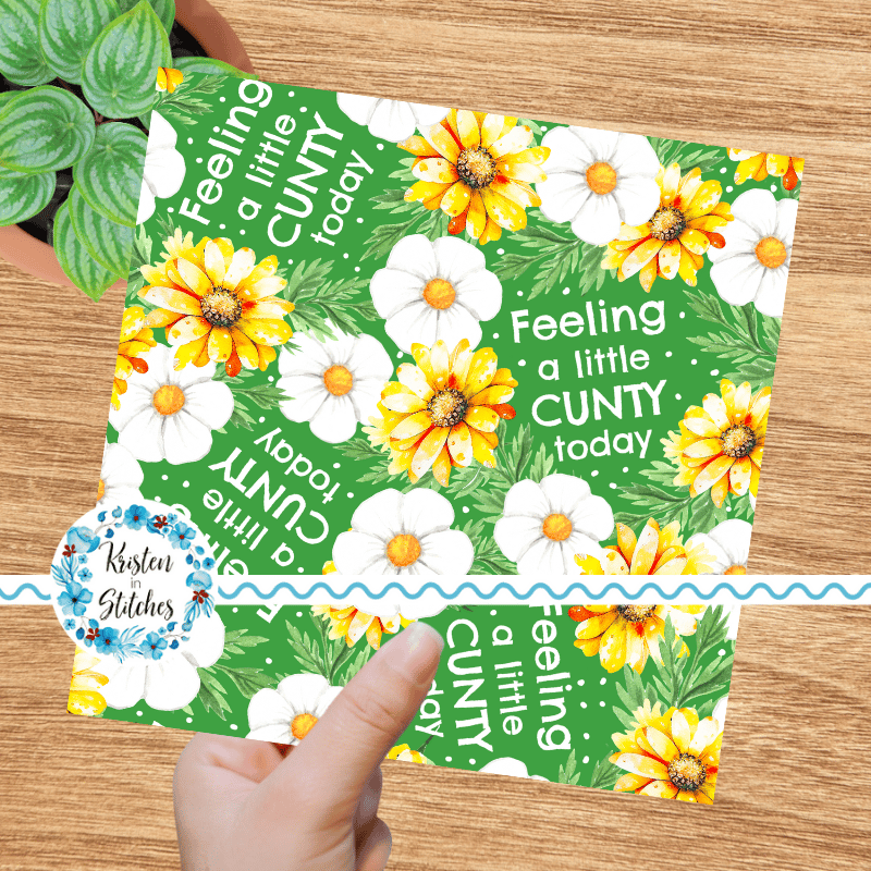 Feeling a Little Cunty Today with white and yellow flowers on green.