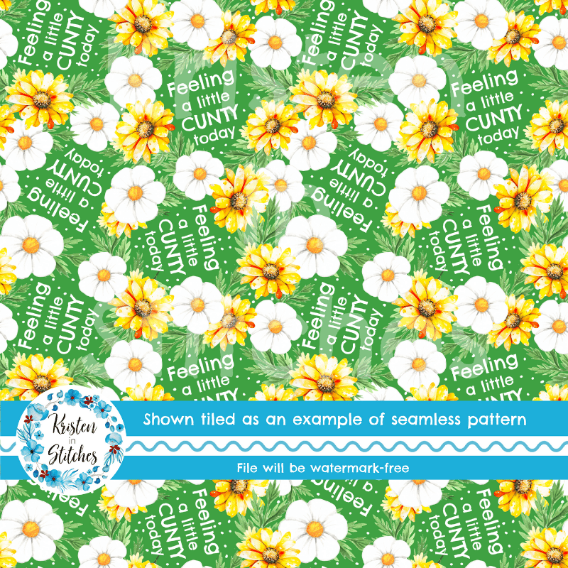 Feeling a Little Cunty Today Sweary Floral Seamless Pattern, Pretty Profanities