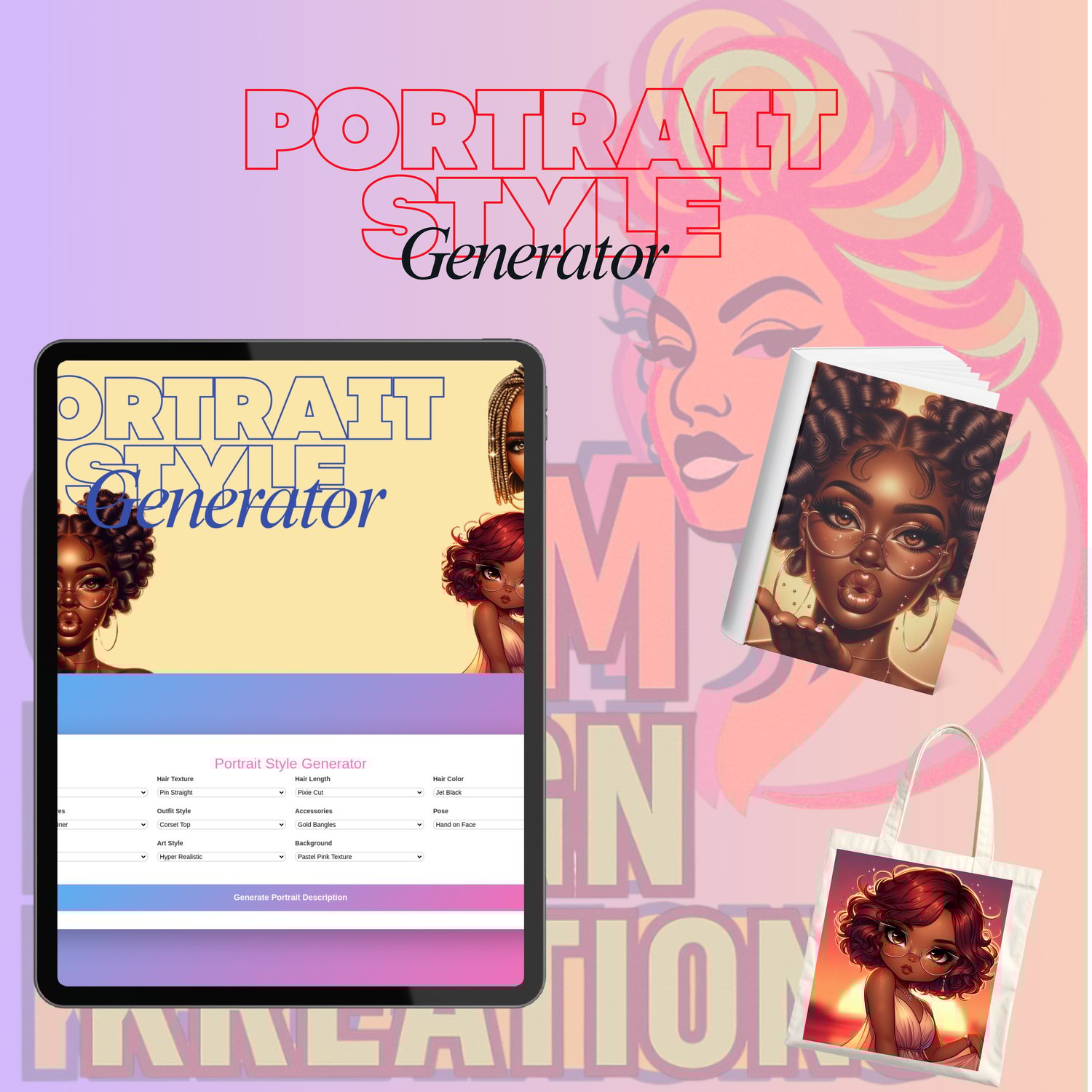 This Portrait Style Generator is your all-in-one creative tool for crafting stunning, highly detailed portrait descriptions in seconds. Whether you’re designing journal covers, stickers, tote bags, posters, or creating digital art prompts for AI tools — this generator helps you build polished, customizable portrait concepts without the stress or guesswork.