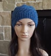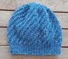 This family Beanie has a 1x1 rib brim then is worked in a diagonal rib stitch.