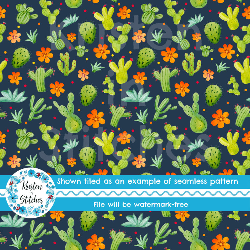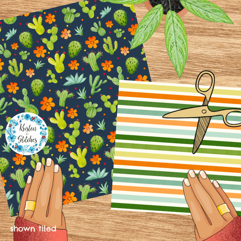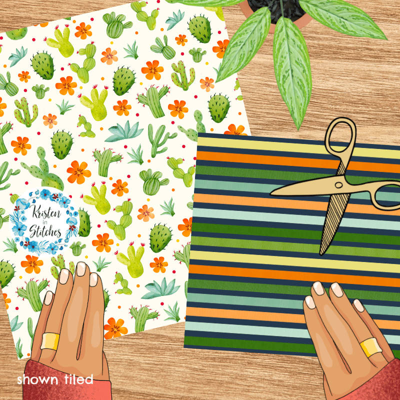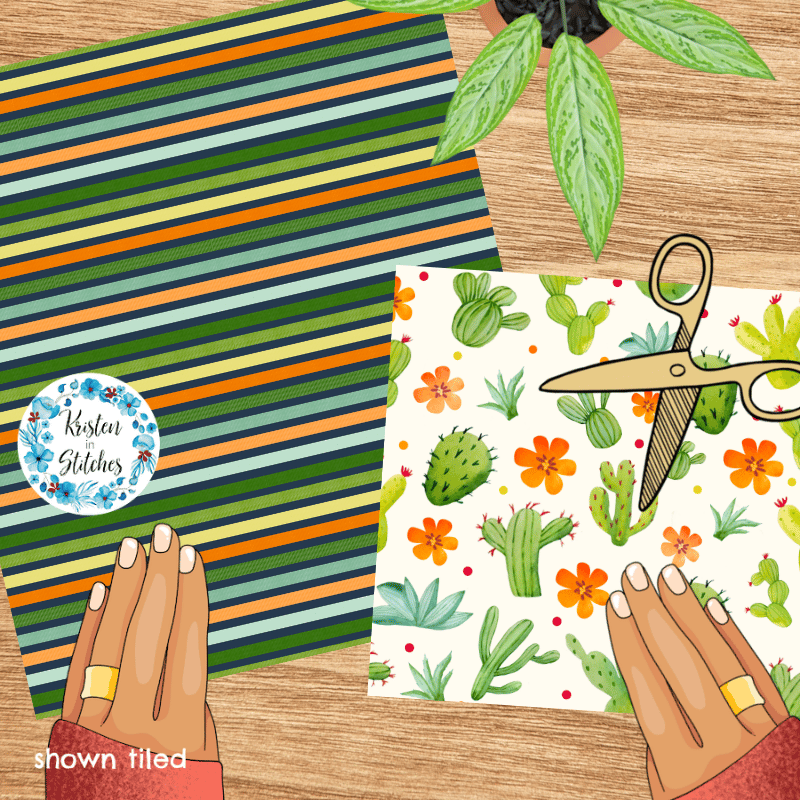 Desert Cactus and Stripes Seamless Pattern Bundle, Set of 4
