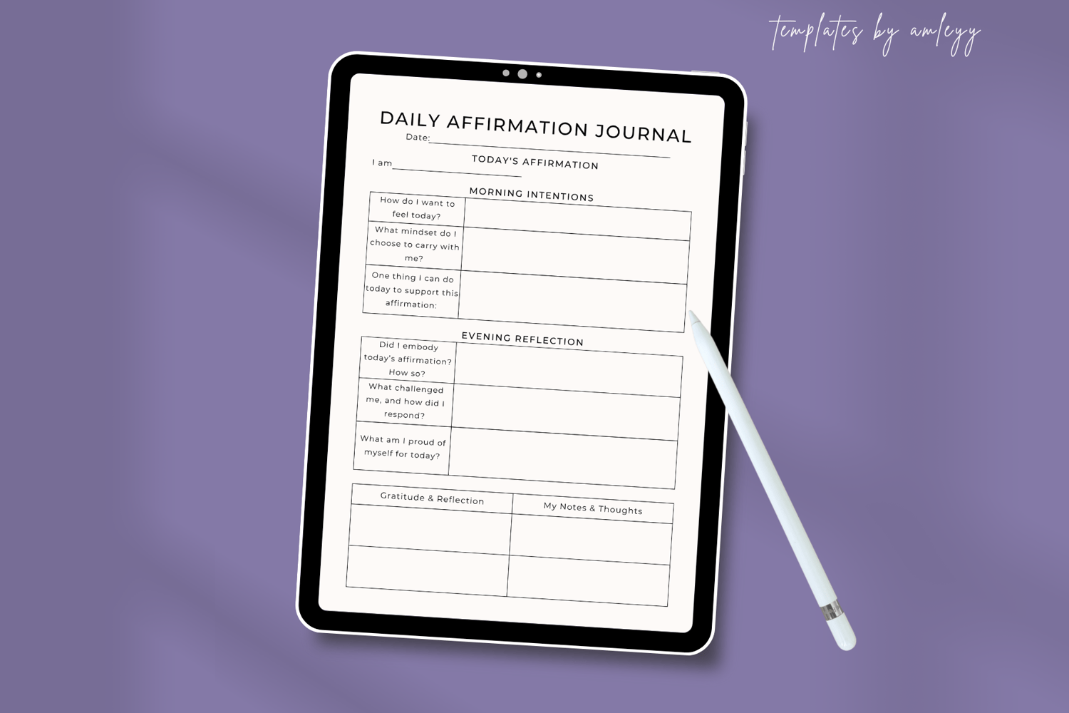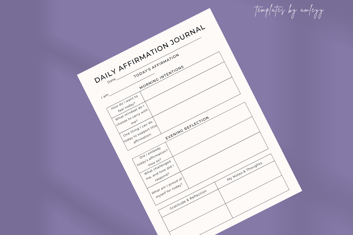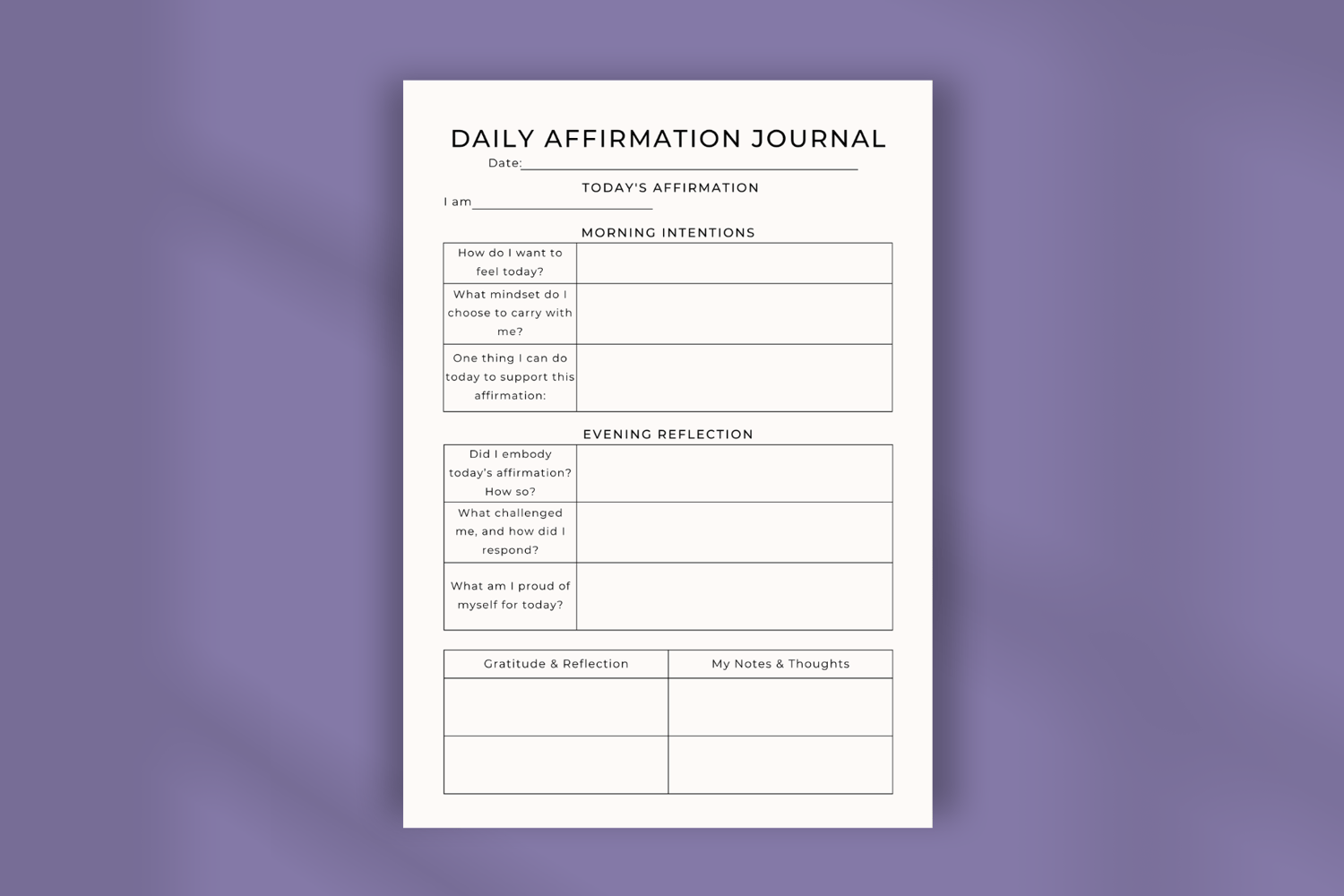 Daily Affirmation Journal Planner Template