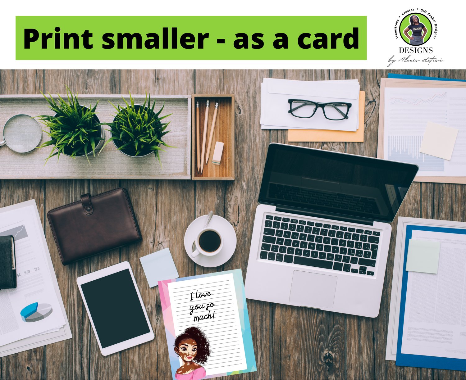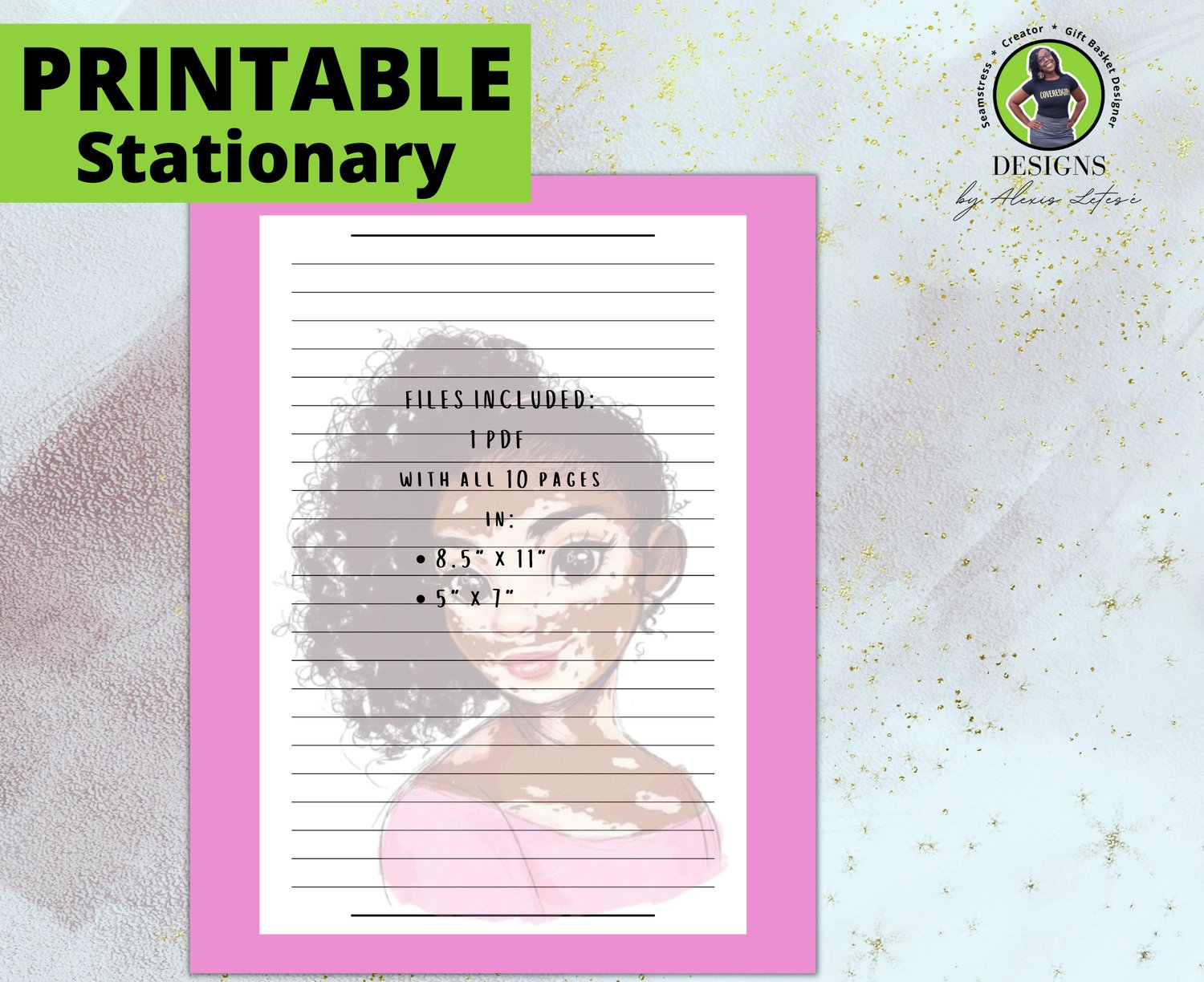 Black Girl Magic Side Ponytail Stationery | Printable Writing Paper in Two Sizes | African American Hairstyle Art | Digital Journal Pages | Instant Download