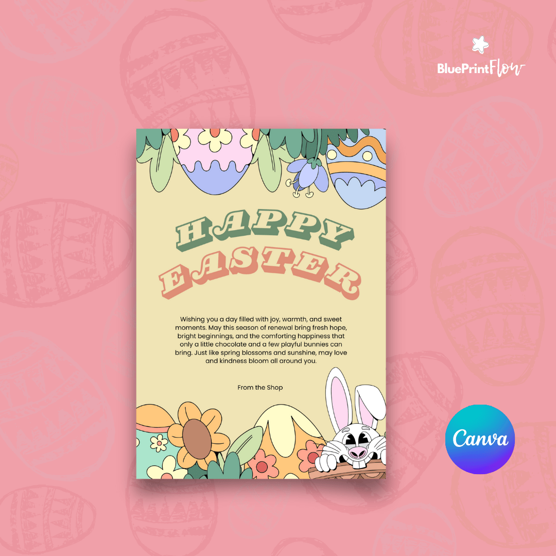 Cartoon Cheerful Chocolate Bunny and Spring Happy Easter Card Celebration Canva Template Design