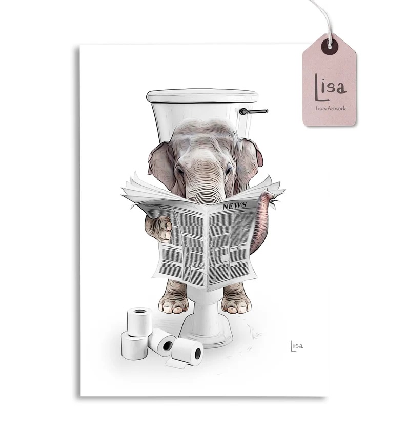 Bathroom art elephant wall art, bathroom wall art, bathroom kids art, bathroom decor, bathroom wall decor, toilet, wall decor