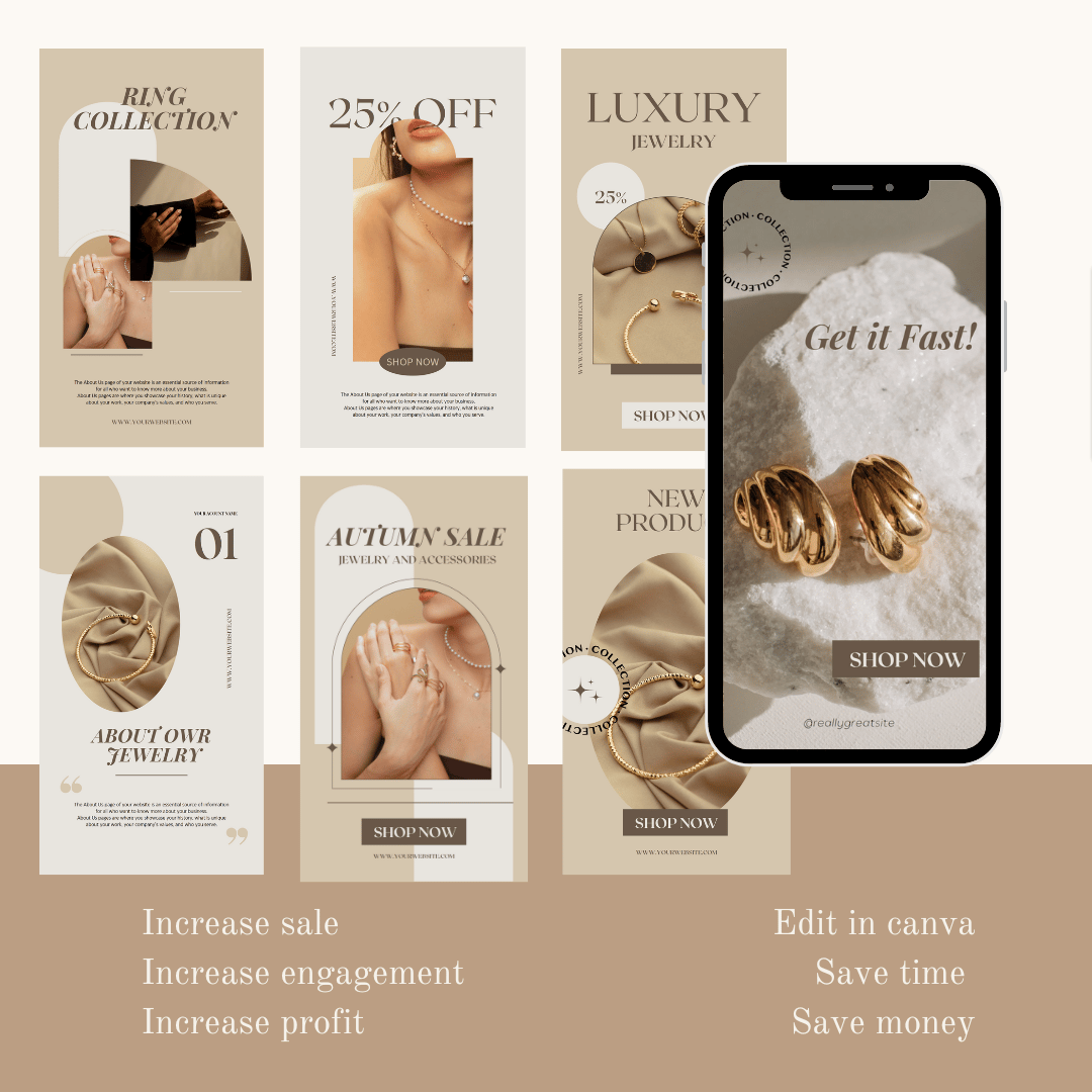 Golden Beige Instagram templates are designed in Canva, everything can be easily edited, color, text, etc.