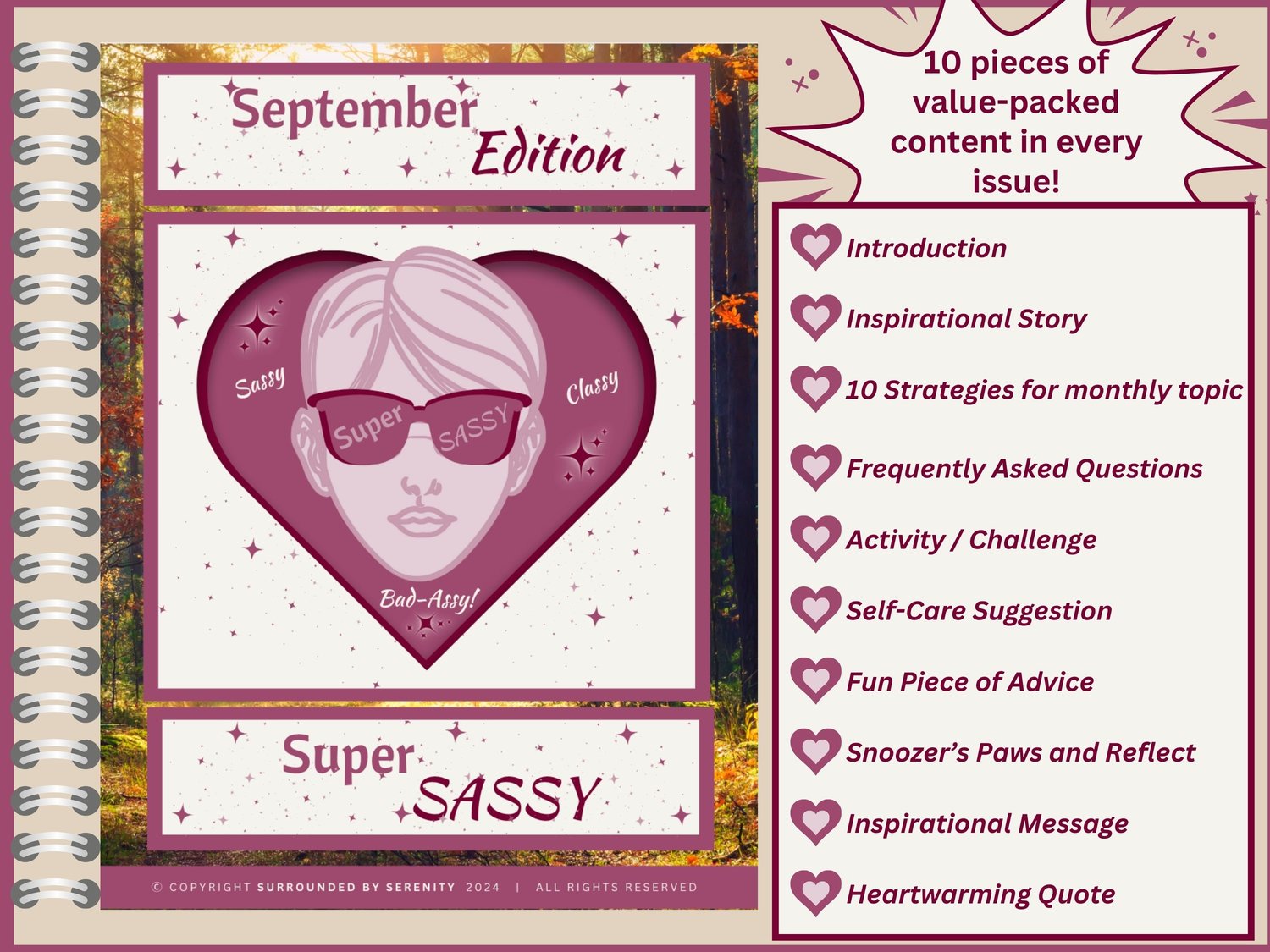 SuperSASSY is included in your Serenity Sisters membership at no additional charge! Dive into a wealth of inspiration and strategies each month as a cherished member of our community. Alternatively, choose to purchase the months most interesting to you and tailor your SuperSASSY experience to your unique journey.