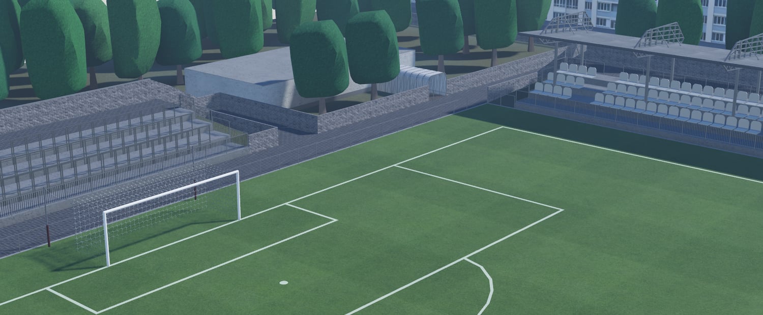 This is a fictional soccer stadium with a pitch area of 480 x 380 blocks. The map includes numerous seating areas for fans, as well as a wide entrance. It also features exclusive areas for referees, including separate locker rooms for the home and visiting teams.