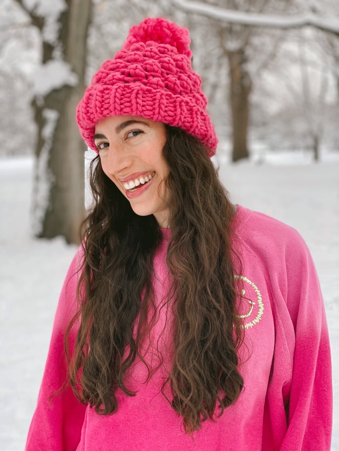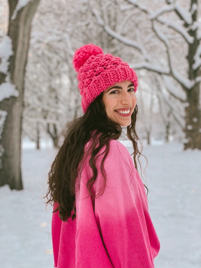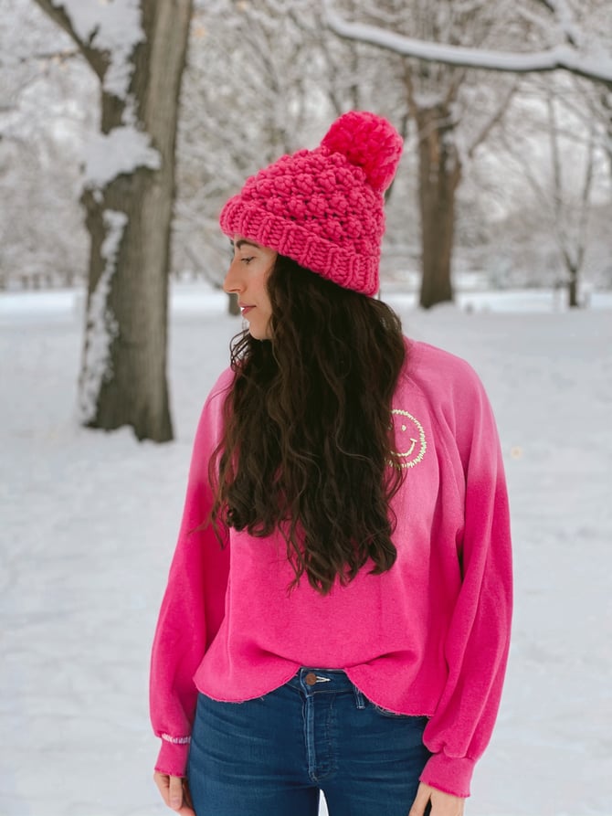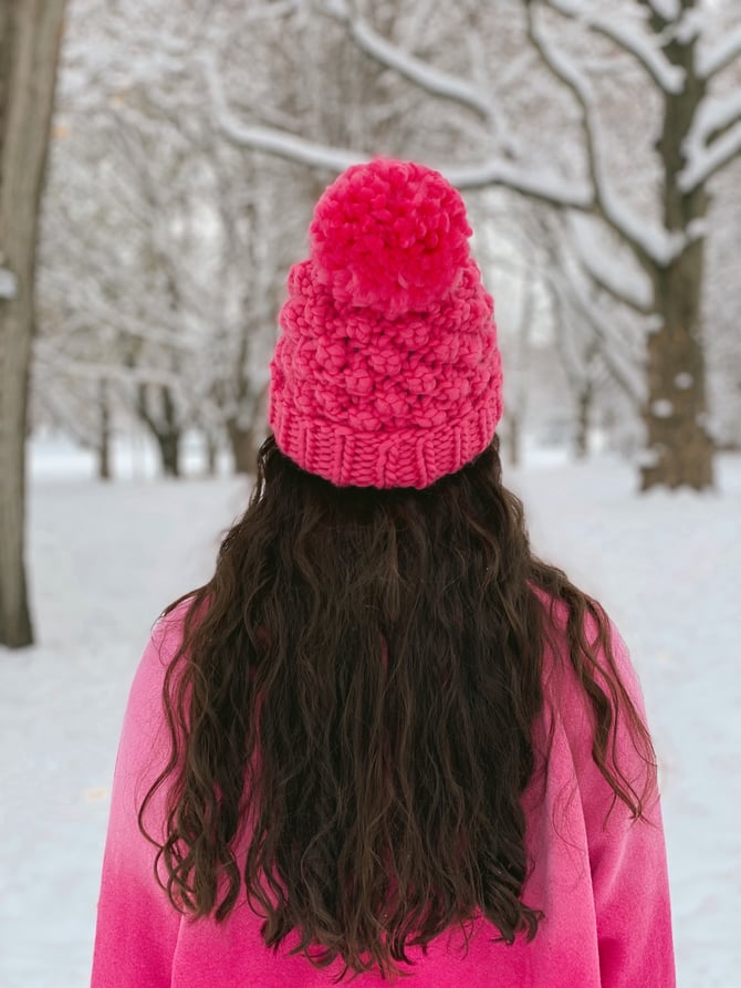 Arctic Berry is inspired by a hat that kept popping up in my Instagram feed but was several seasons old and no longer available. I loved the look of it and decided to knit my own version! Arctic Berry knits up quickly in Super Bulky yarn! Named after the “Raspberry Stitch” used in the pattern, this hat is available in two sizes. It’s the perfect chunky hat to wear all winter long! Pair it with flannels, sweaters, or maxi dresses to enhance any outfit.
