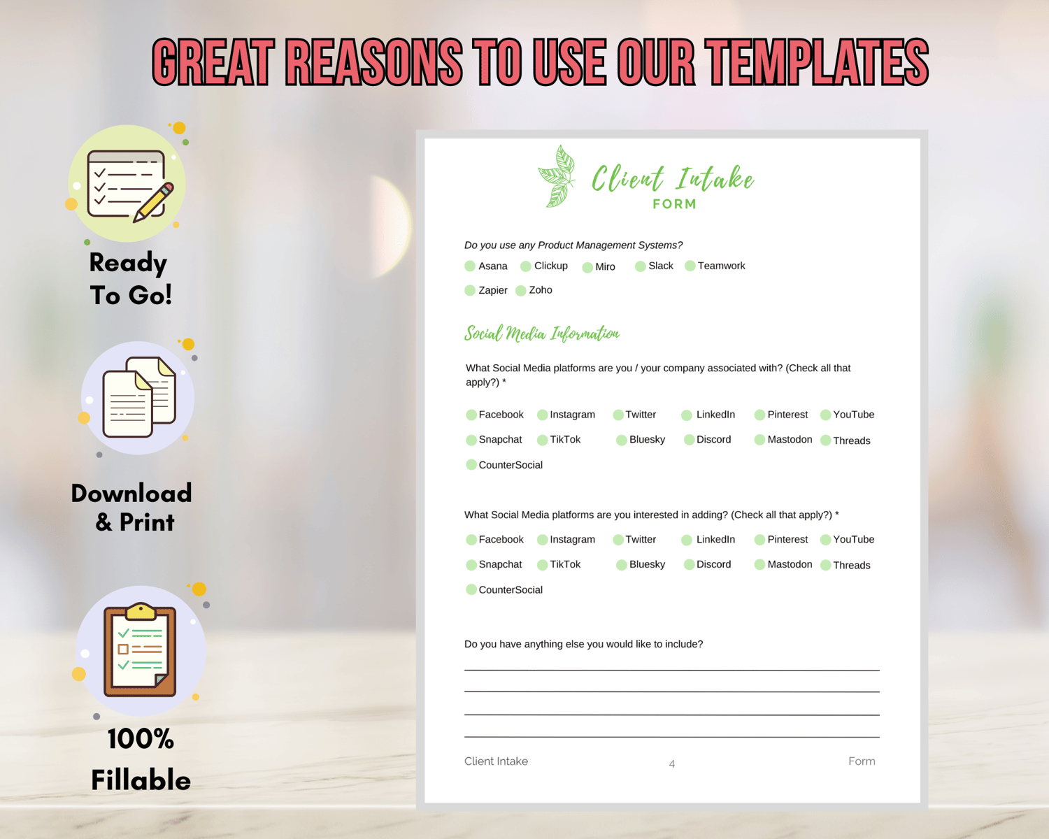 š Don't let bookkeeping overwhelm you! Invest in efficiency and organization today with our customizable intake form template.
