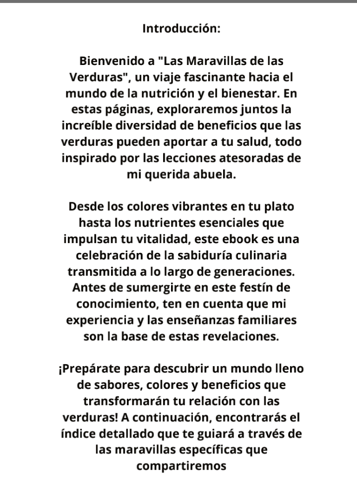 Descubre los secretos nutritivos en, Las Maravillas de las Verduras. Este ebook es tu guía esencial para explorar las propiedades asombrosas que las verduras ofrecen para tu bienestar. Inspirado por la sabiduría transmitida por mi abuela, este libro te sumerge en un viaje informativo sobre como las verduras pueden potenciar tu salud. ¡Transforma tu dieta y descubre un mundo de beneficios saludables! 🌿💚 Obtén tu copia ahora. ¡Tu bienestar te lo agradecerá! 📚🌟