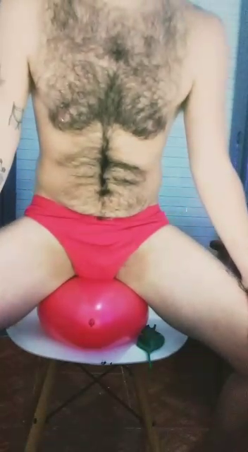 John in briefs starts popping balloons like crazy!