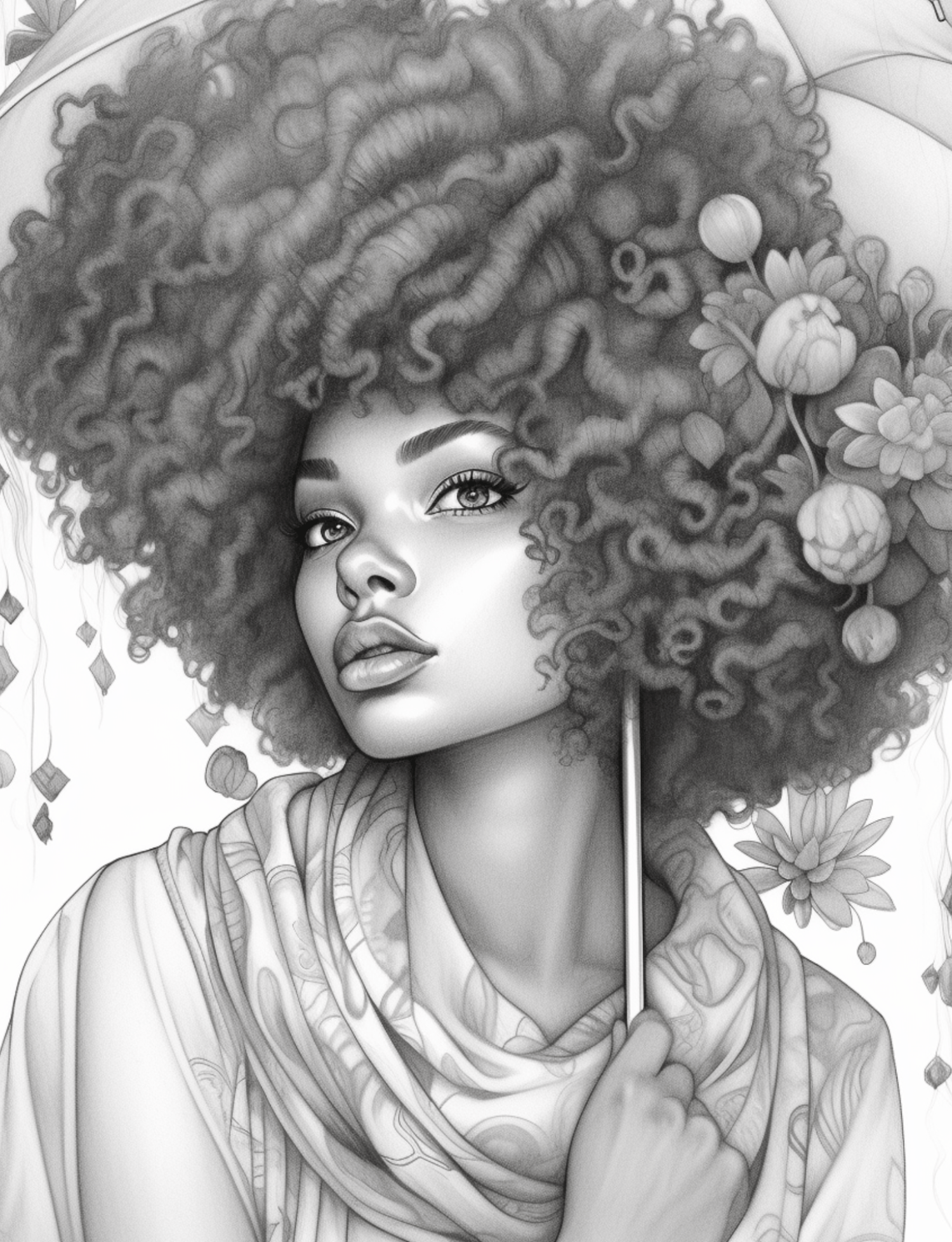 - Includes 10 coloring pages from my "Beautiful Women Portrait Coloring Book: Afro Style" grayscale coloring book.
