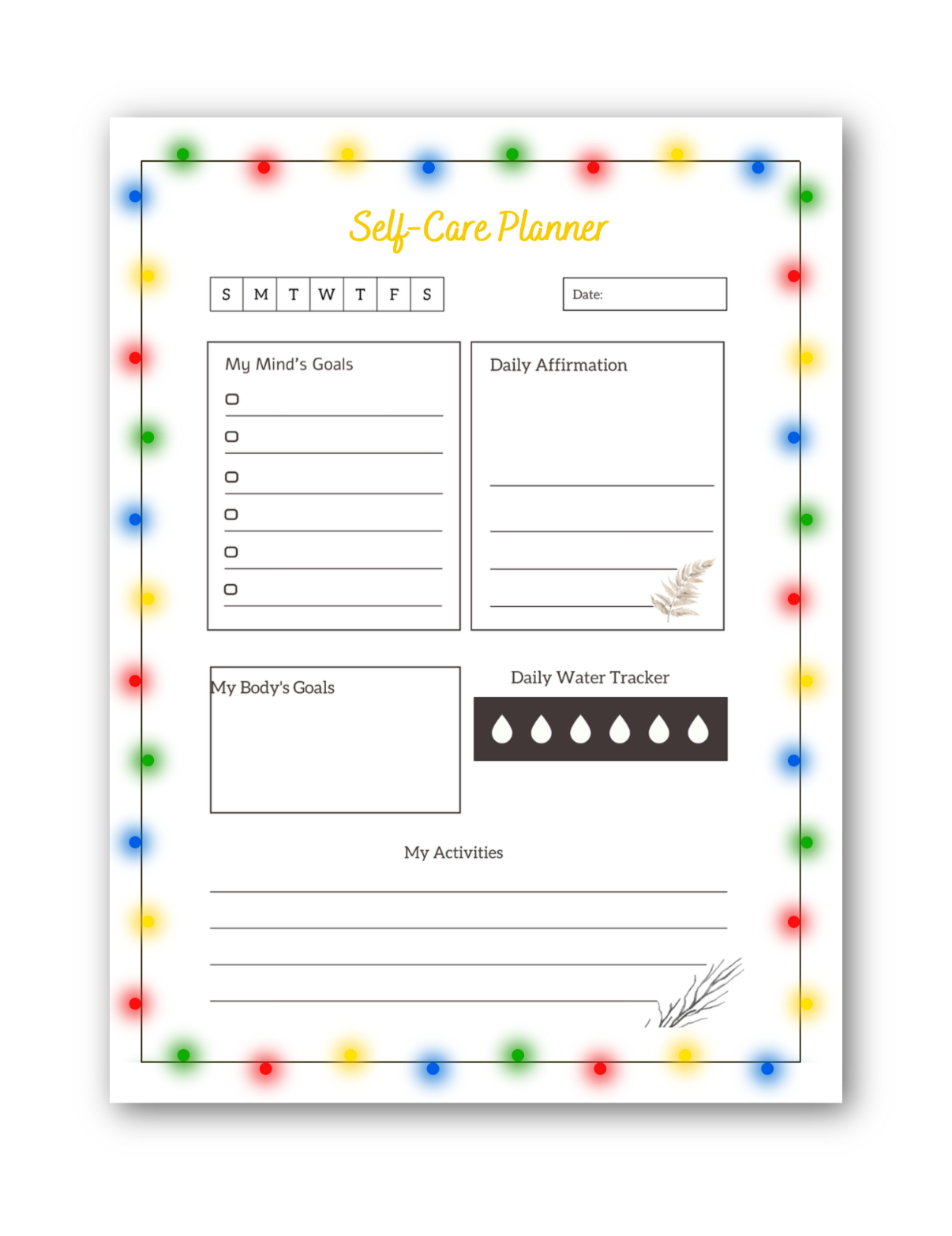 Self-Care Planner - creating goals, daily affirmations, daily activities, etc.