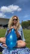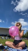 Kyrie blows to pop 2 balloons in public at a park. The loud pops scared the other visitors.