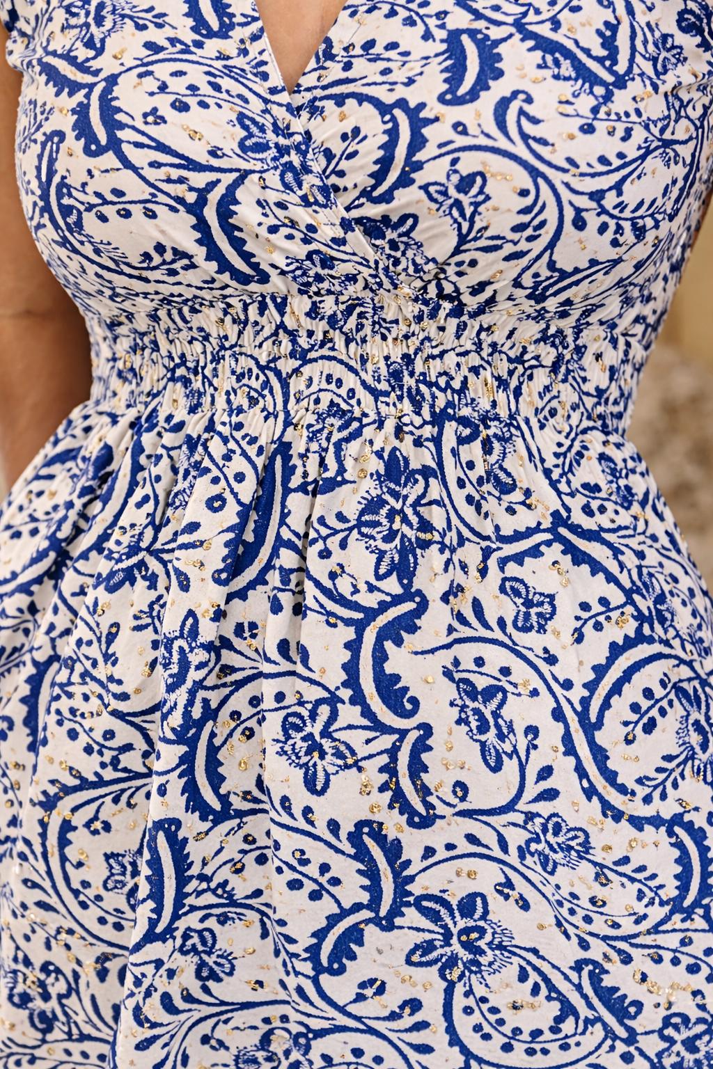 Entre son imprimé bleu sur fond blanc et ses jolies manches volantées, elle a ce petit truc en plus qui fait la différence.