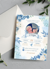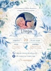 🕊️💙💚 Invitación Vertical Bautizo Floral Azul y Verde ✨🌿