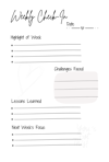 - Weekly Check-Ins: Review your wins, lessons, and goals.