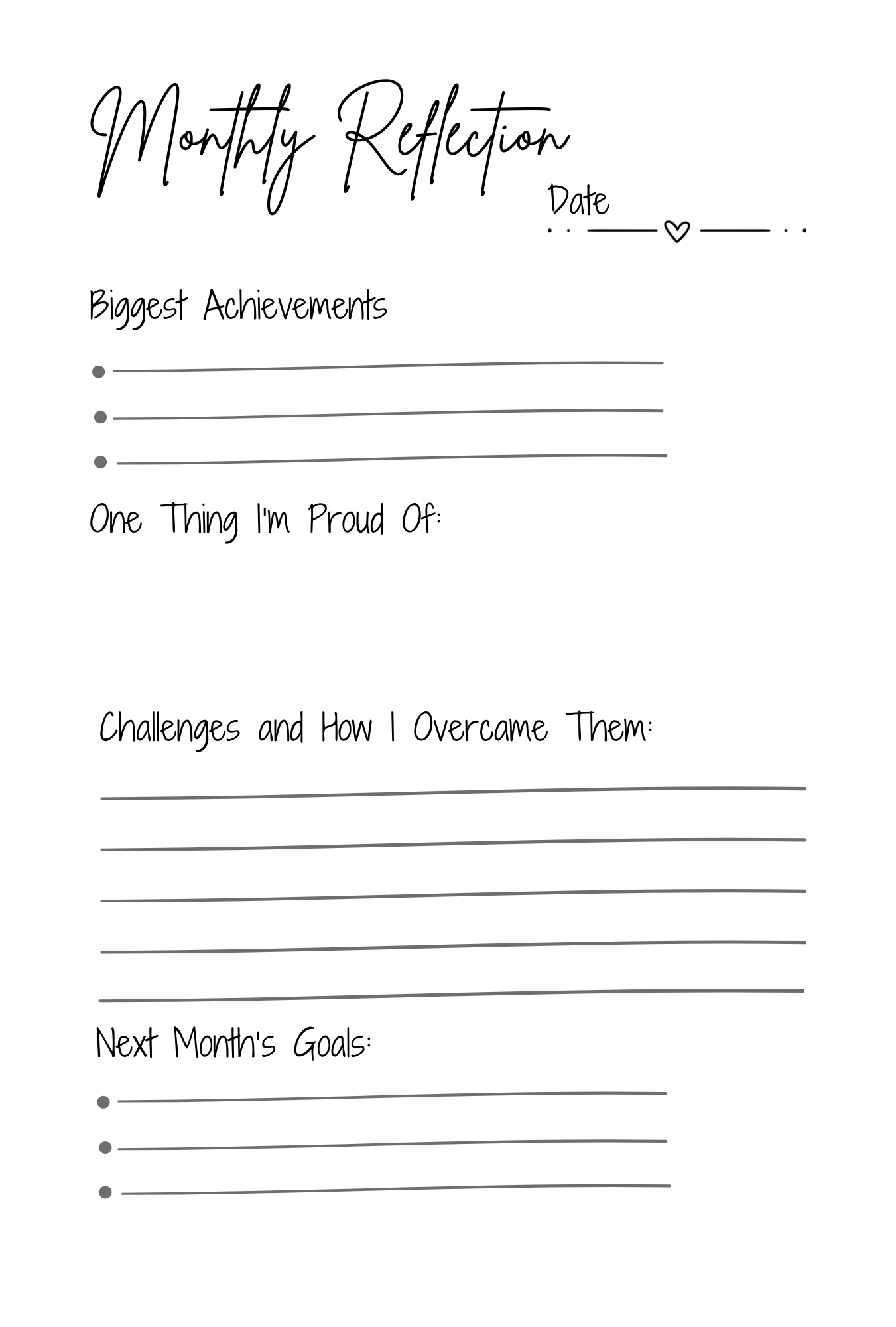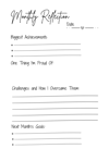 - Monthly Reflections: Guided prompts for deep reflections and key takeaways.