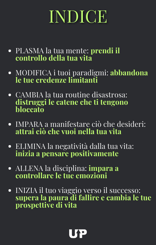 In questo manuale imparerai a riprogrammare la mente per sbloccare il tuo vero potenziale.