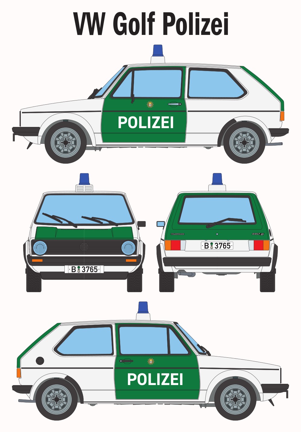 VW Golf Polizei Car Blueprint