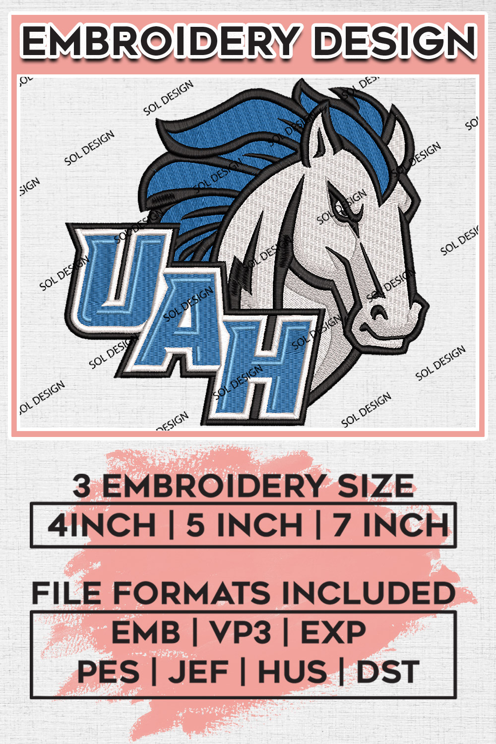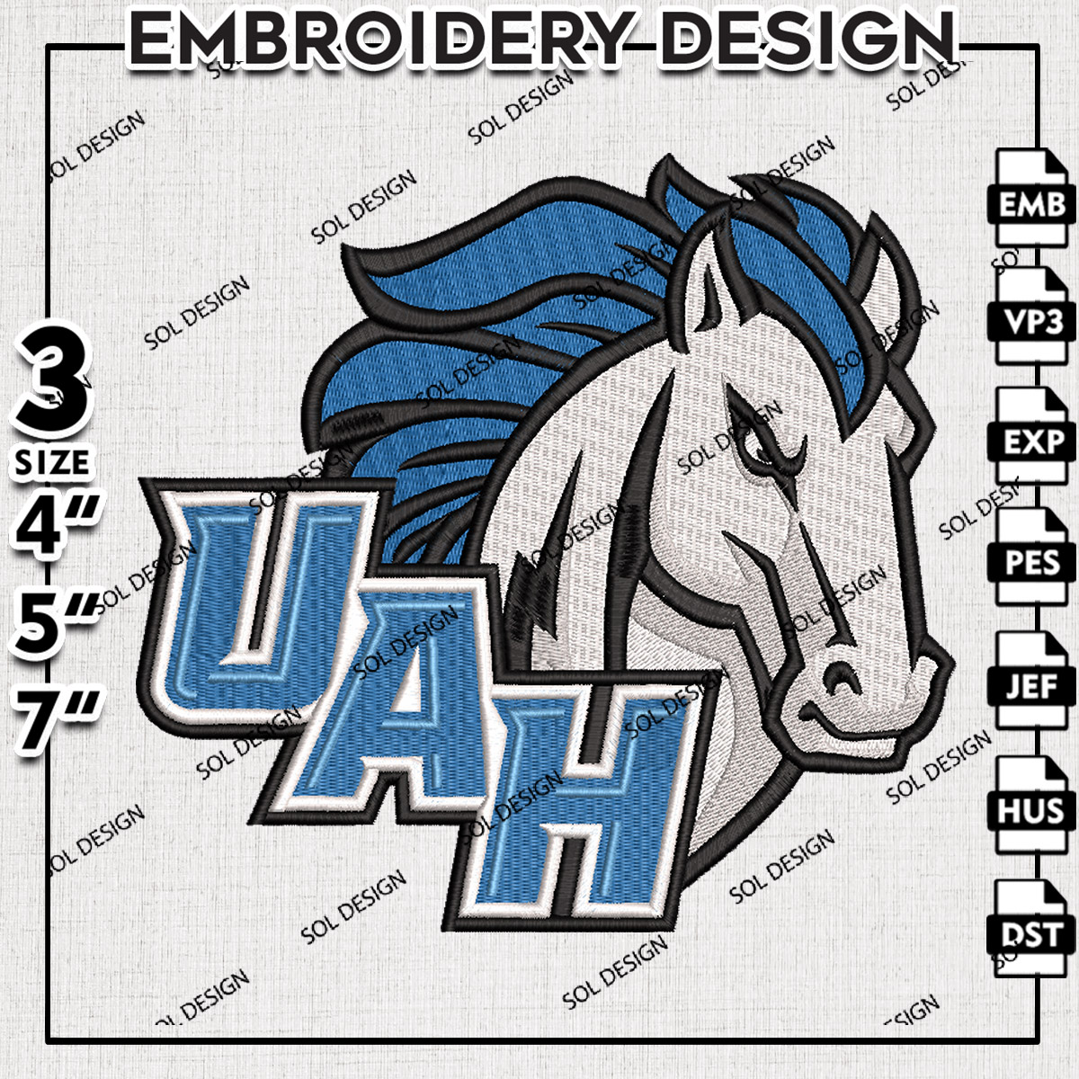 UAH Alabama Huntsville Chargers NCAA College Football Team Logo Embroidery Designs, Ncaa Embroidery Files, NCAA Alabama Huntsville Chargers College Team Logo Embroidery, Game Day Machine Embroidery Design, Digital Download