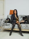 Liona looked incredibly stylish today; she wore a long leopard-print dress paired with black stockings and a stunning pair of high heels. She drove to the package pickup point and collected her delivery. Although she uses a cane, it did nothing to diminish her beauty.