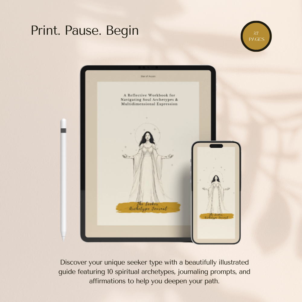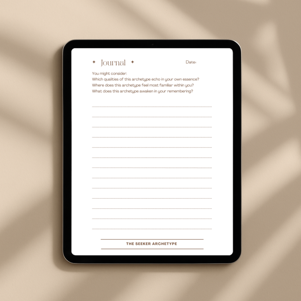 The Seeker Archetype Journal is a 27-page printable companion designed to help you explore the rhythms of your awakening. Through gentle prompts, symbolic inquiry, and space for reflection, it invites you to meet yourself exactly where you are — and listen for where your soul is calling you next.