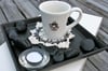 This design works with pretty much any weight yarn, works great as a quick stashbusting project, and I plan on making a few more and running them through the washer and dryer. I think a little felting action will add a great dimension to an already super and graphically bold little something something to place under your daily cuppa.