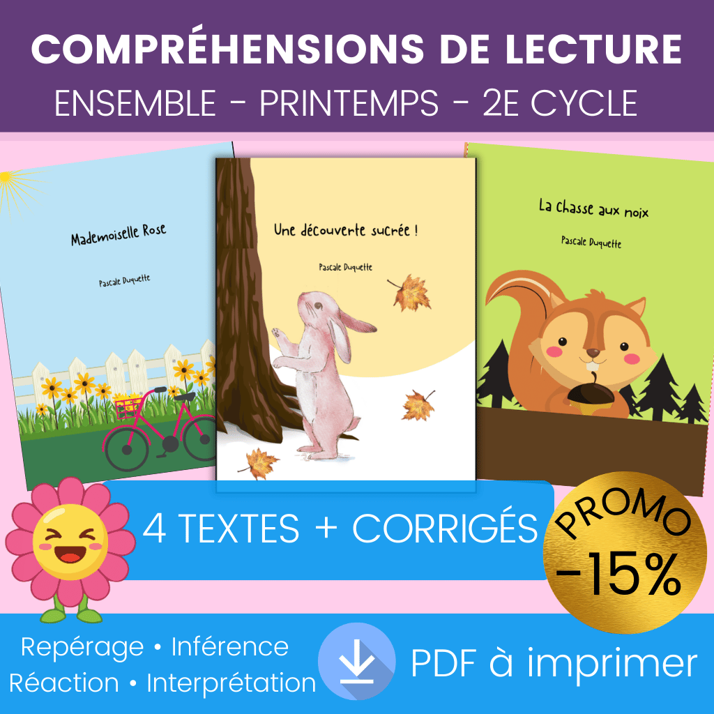 Lecture Printemps – Ensemble complet (2e cycle) Textes captivants, questionnaires 4 dimensions et corrigés prêts à imprimer