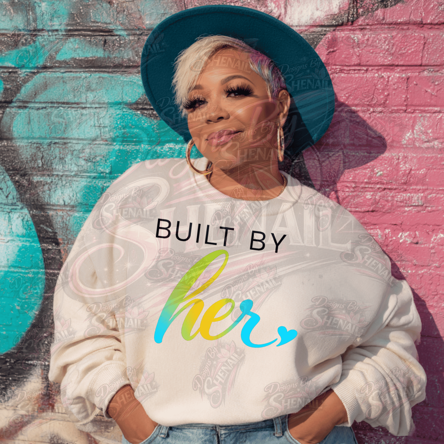 Built By Her PNG – Women Empowerment T-Shirt Design, Feminist Graphic, Girl Boss Shirt, Instant Digital Download