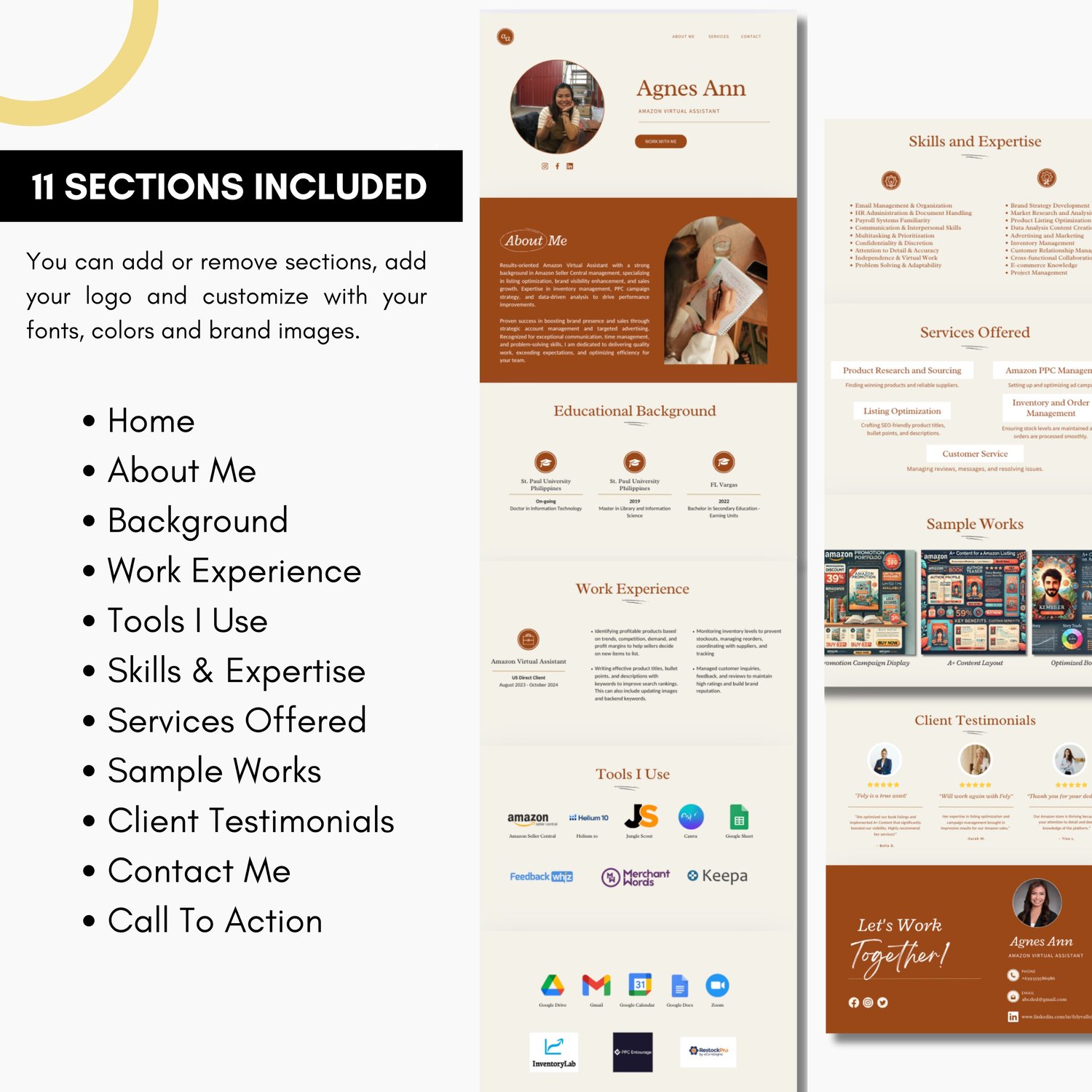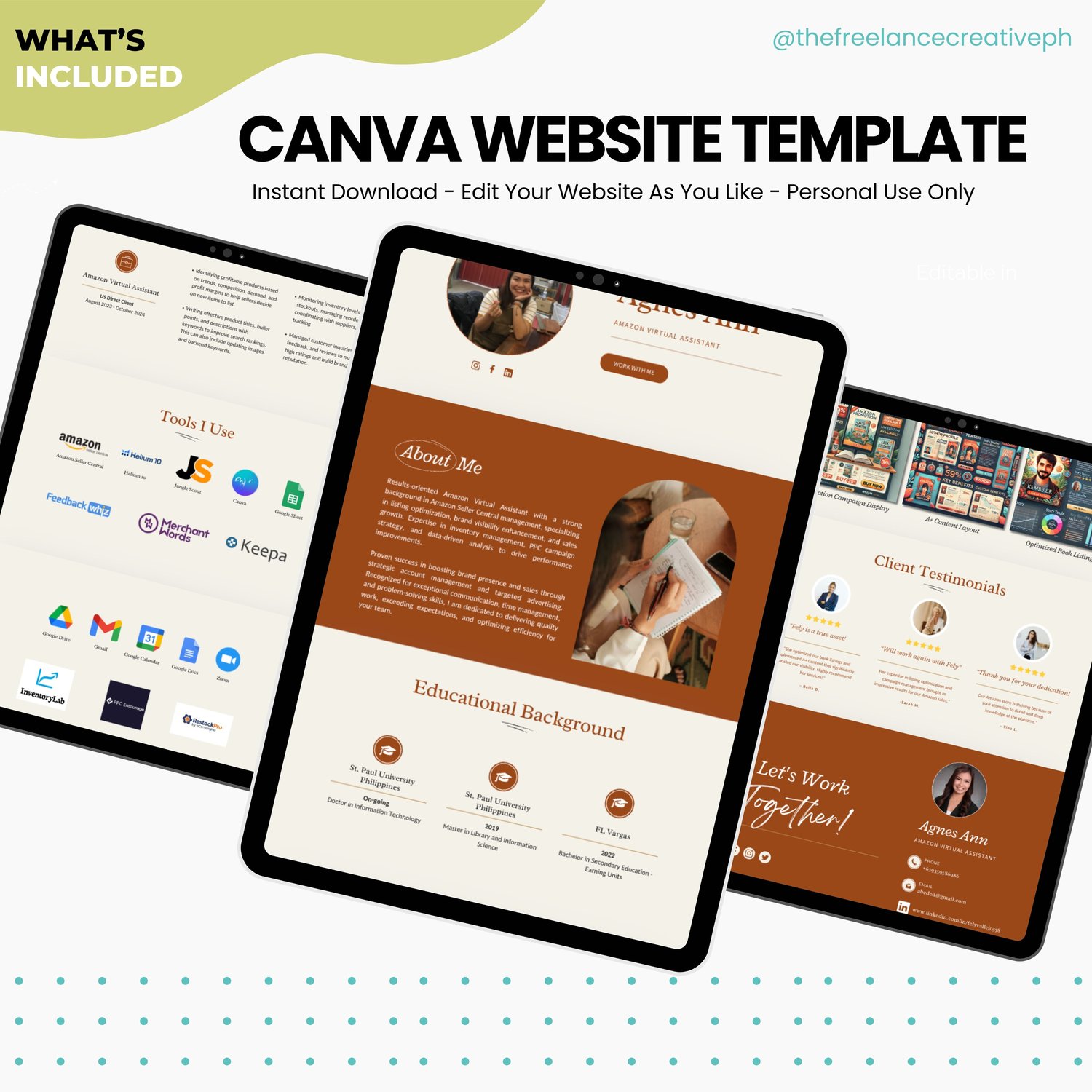Professional Canva Portfolio Website Template for Amazon Virtual Assistants, Freelancers and Small Business Owners